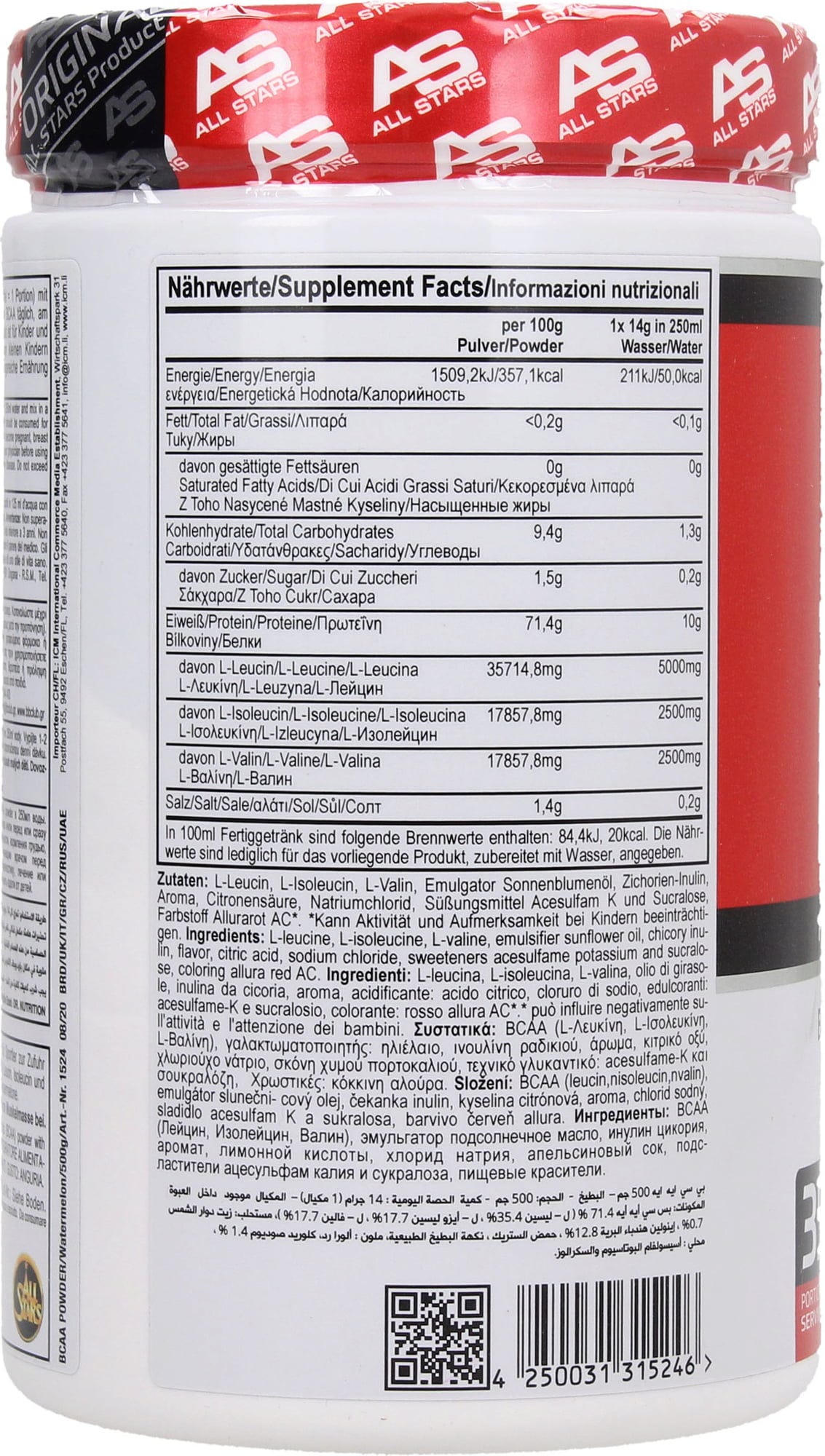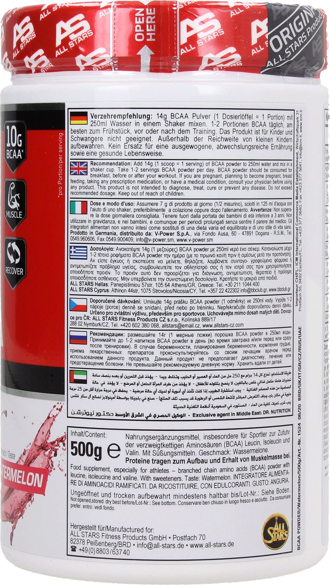 All Stars BCAA-pulver, Vattenmelon, 500 g
