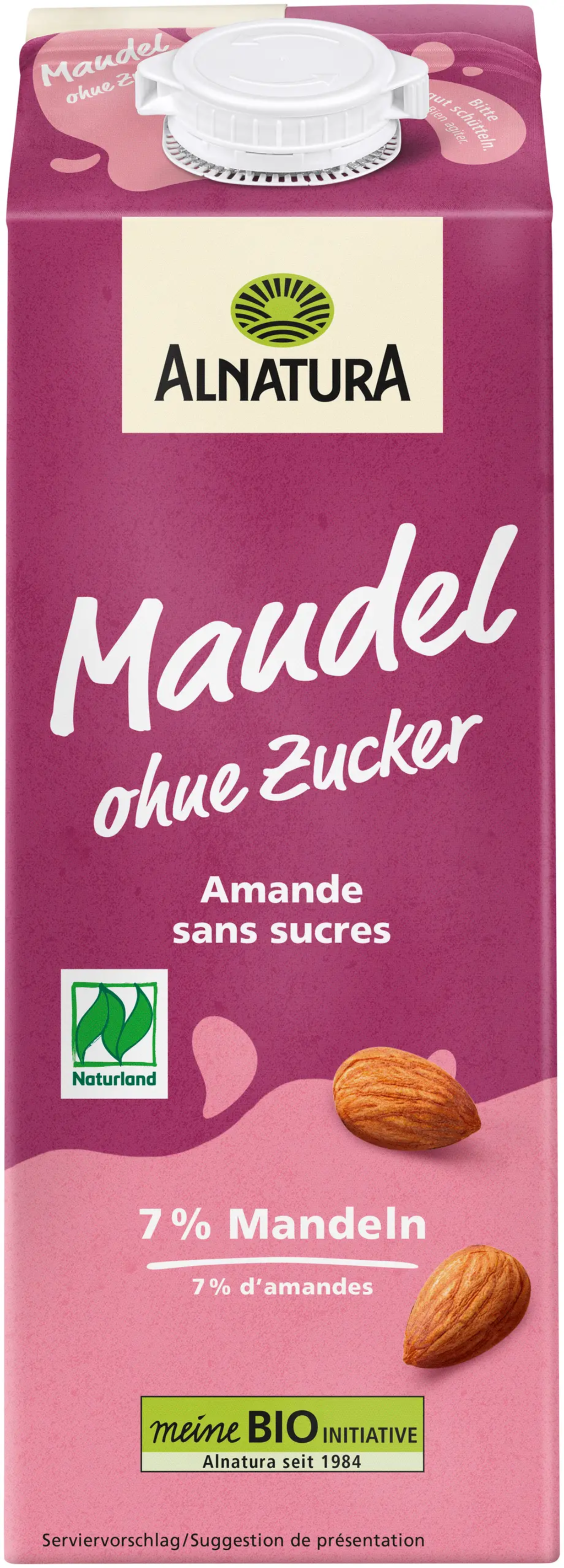 Den osötade mandeldrycken från Alnatura smakar utmärkt ren eller som vegansk mjölkersättning i kaffe, shakes, müsli eller bakverk. Den tillverkas utan stabiliseringsmedel, är fri från gluten och laktos. Mandlarna kommer från Spanien, där de odlas enligt Naturlands riktlinjer.
