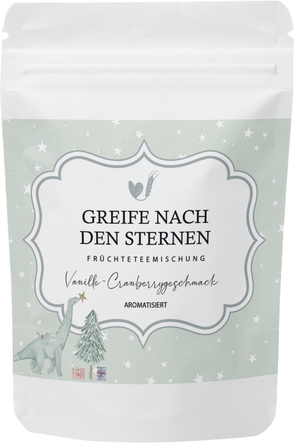 Njut av detta fruktiga te med ljuvlig smak av vanilj och tranbär. Tepåsen "Greife nach den Sternen" från Bake Affair innehåller bland annat tranbär, äppelbitar, fläderbär och nyponskal. Små marshmallows i blandningen ger det där lilla extra.