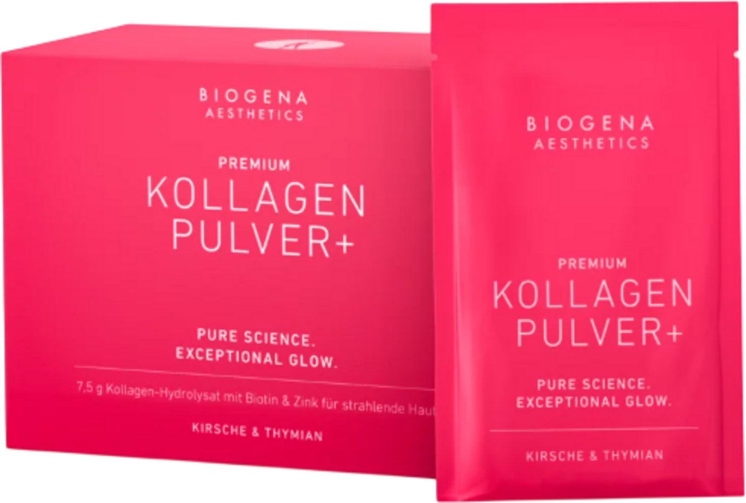 BIOGENA Collagen+ Essentials har en uppfriskande smak av körsbär och timjan och kombinerar noggrant utvalda ingredienser för att skapa en premiumblandning. Det NATICOL®-kollagen som ingår är huvudsakligen baserat på peptider från fiskkollagen typ I. Det kommer från ansvarsfullt vattenbruk, som stöder ett hållbart skydd av marina resurser. Produkten kompletteras med biotin, zink, granatäppleextrakt och hibiskusblomsextrakt.