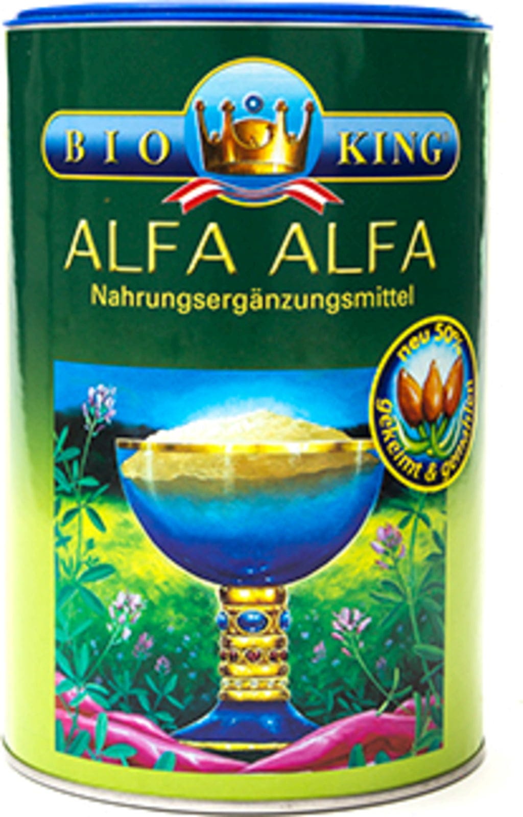 Alfalfa, även känd som lusern, är en näringsrik naturprodukt som har varit uppskattad som livsmedel i arabvärlden i århundraden. Det fullvärdiga pulvret framställs av torkade alfalfafrön och mals skonsamt vid temperaturer under 30°C.