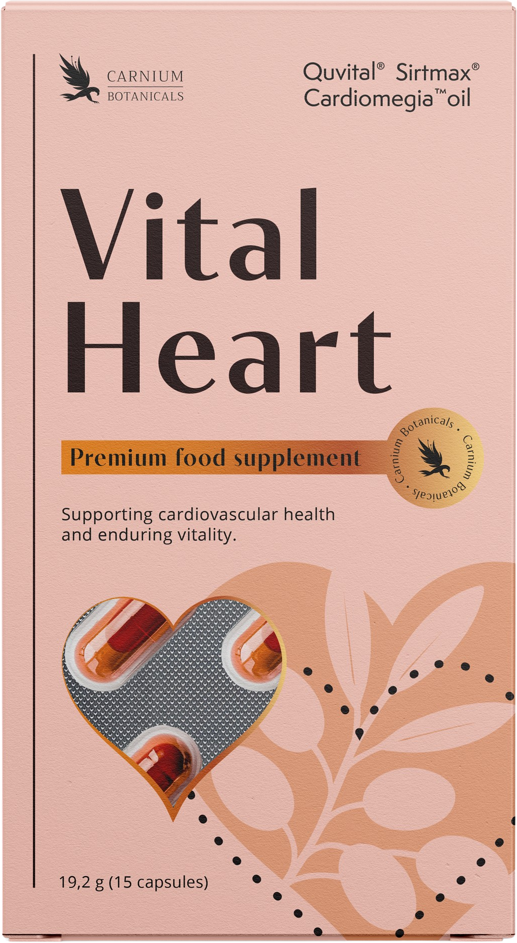 Formulan är baserad på noggrant utvalda ingredienser av vegetabiliskt ursprung, bland annat CardiOmegia™ havtornsolja, en naturlig källa till omega-7-fettsyror. Formuleringen kompletteras med det patenterade extraktet av svart ingefära Sirtmax®, coenzym Q10 samt vitaminerna B1 och B2.