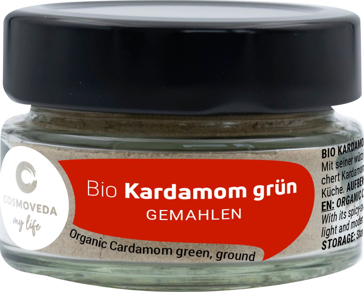 - Den gröna kardemumman med sina små, aromatiska, svarta frön är populär nymald och används i desserter, fina drycker, mjölk, ris och curryrätter.