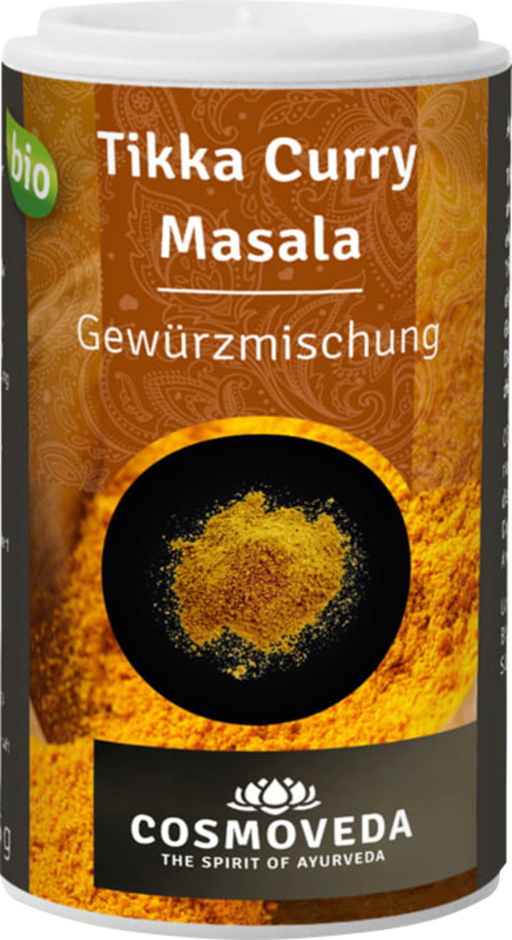 Cosmovedas Tikka Curry Masala är en specialblandad kryddblandning av utvalda ayurvediska kryddor. Det ger en mycket speciell och läcker touch till tikka-rätter.
