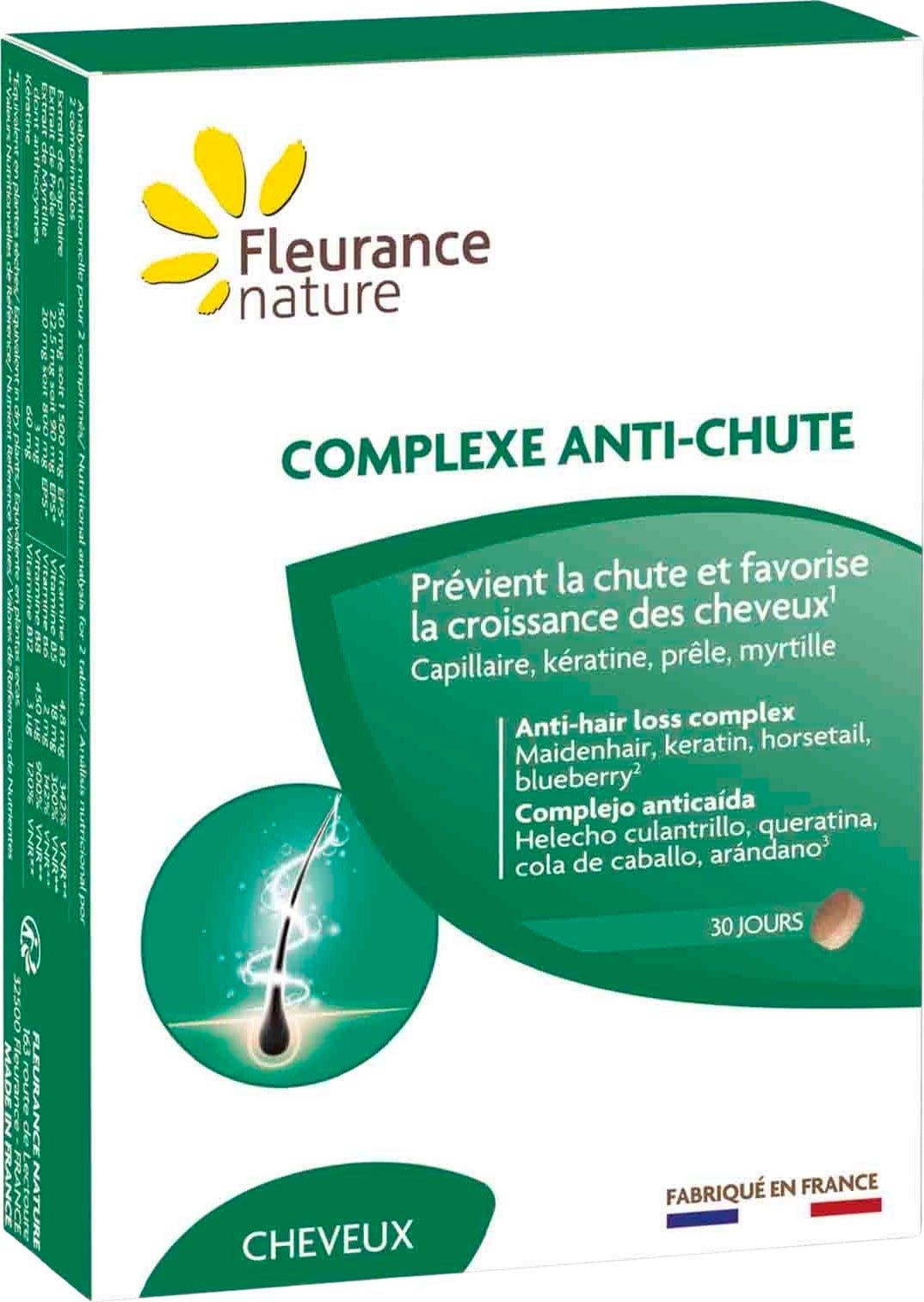 Denna produkt är formulerad med extrakt från naturliga ingredienser som montpellierhårrot, åkerfräken och blåbär. Den innehåller även zink, selen och vitamin B8 samt vitaminerna B2, B6, B12 och magnesium. Keratin, cystin och metionin, två svavelhaltiga aminosyror, kompletterar formulan.