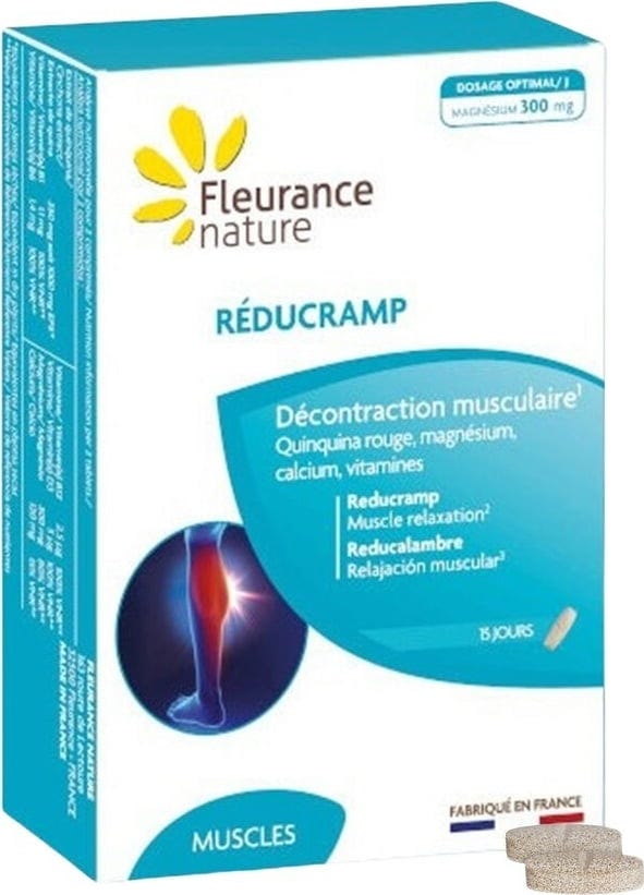 Magnesiumcitrat, Calciumcarbonat, Cinchona succirubra extrakt, Magnesium (als Oxid), Majsstärkelse, Rismjöl, Fyllmedel (Gummi Arabicum), Vitaminer (Vitamin B12, Vitamin D3 (kolekalciferol), Vitamin B6, Vitamin B1)
