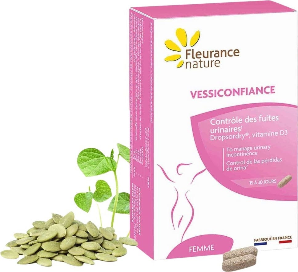 Urininkontinens kan drabba alla, men kvinnor är mest drabbade. Det yttrar sig som ofrivilligt urinläckage, vilket vanligtvis beror på en försvagning av musklerna som stödjer blåsan (bäckenbotten och slutmuskeln) eller på en överaktiv blåsa. Vessiconfiance är en unik och målinriktad aktiv ingrediens som har varit föremål för många vetenskapliga studier och kombinerar soja-isoflavoner med extrakt av pumpakärnor. Vitamin D3 kompletterar formulan.