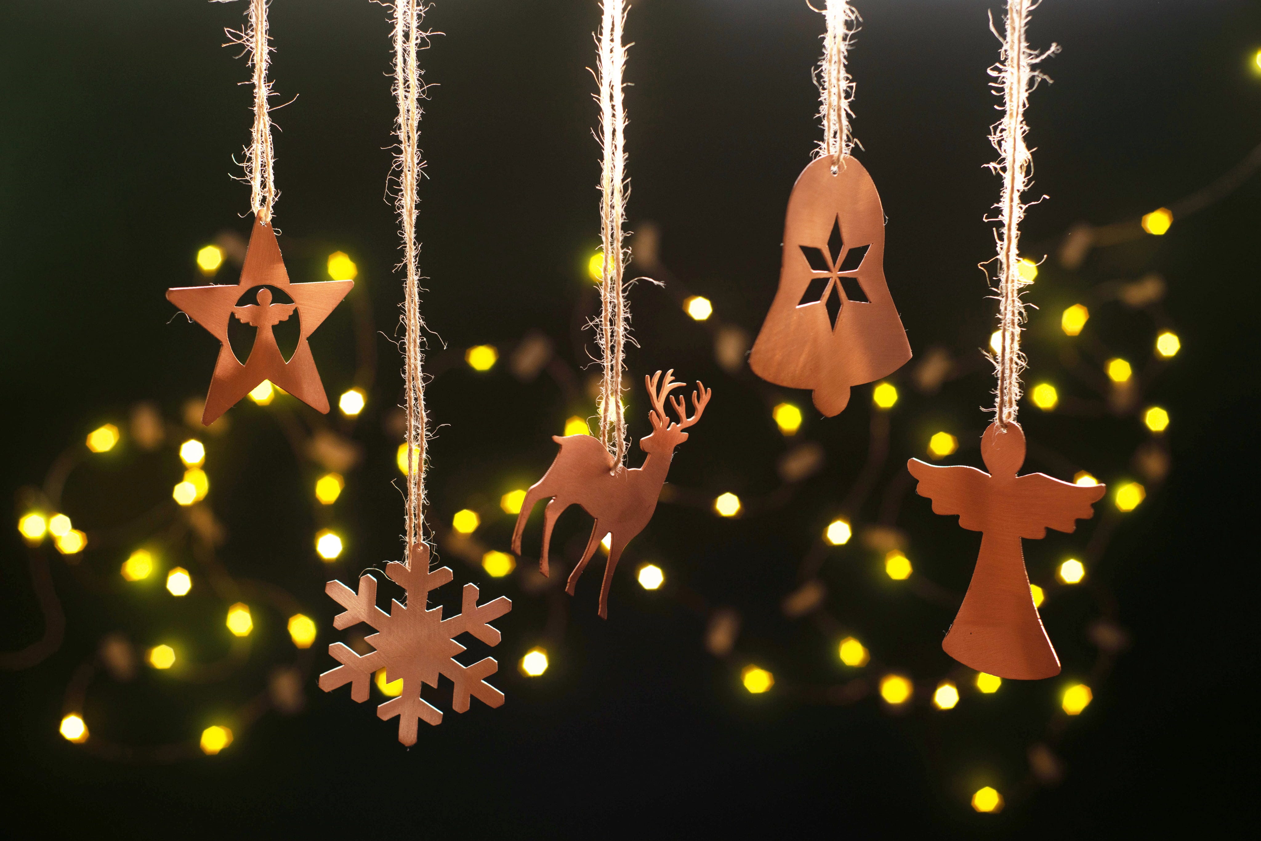 De vackra prydnaderna av högkvalitativ koppar är tillverkade för hand och förhöjer både granen och paketen under. I vilket fall som helst ger de julstämning. Lacket skyddar kopparn och ger mer briljans samt längre hållbarhet.
