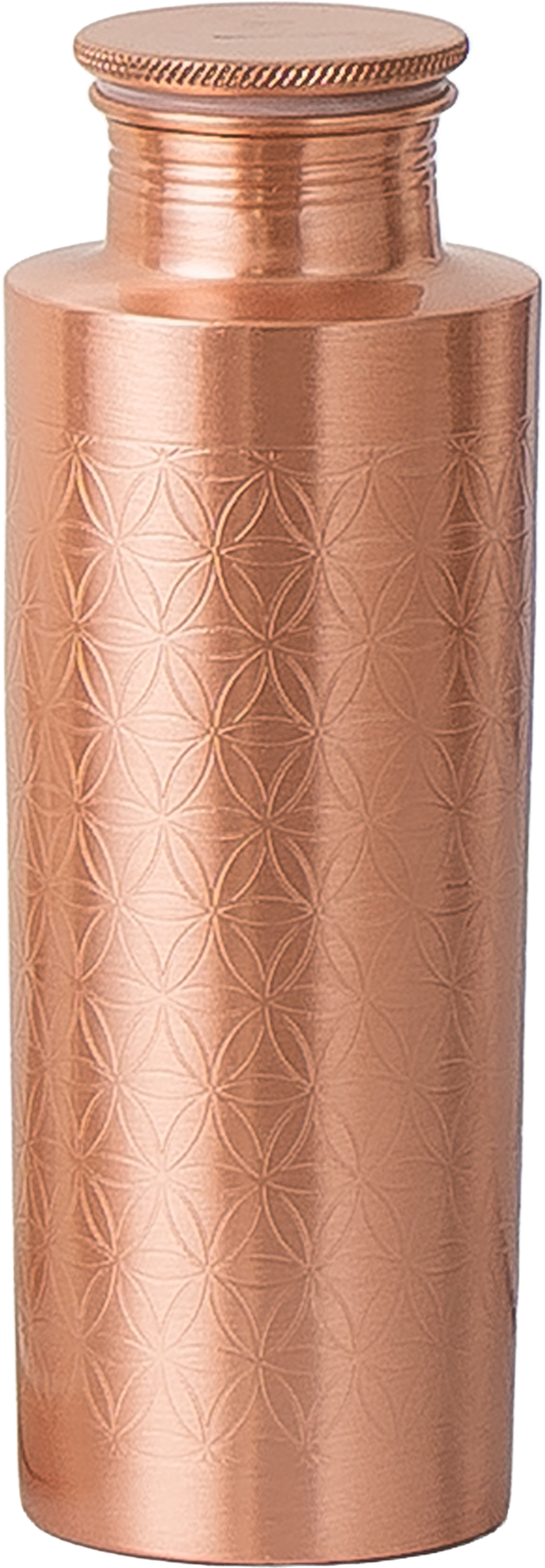 Den klassiska vattenflaskan glänser i en ny design – den är dekorerad med livets blommas heliga geometri och är särskilt hållbar. Designad för den andliga livsstilen, är den funktionell och läckagesäker.