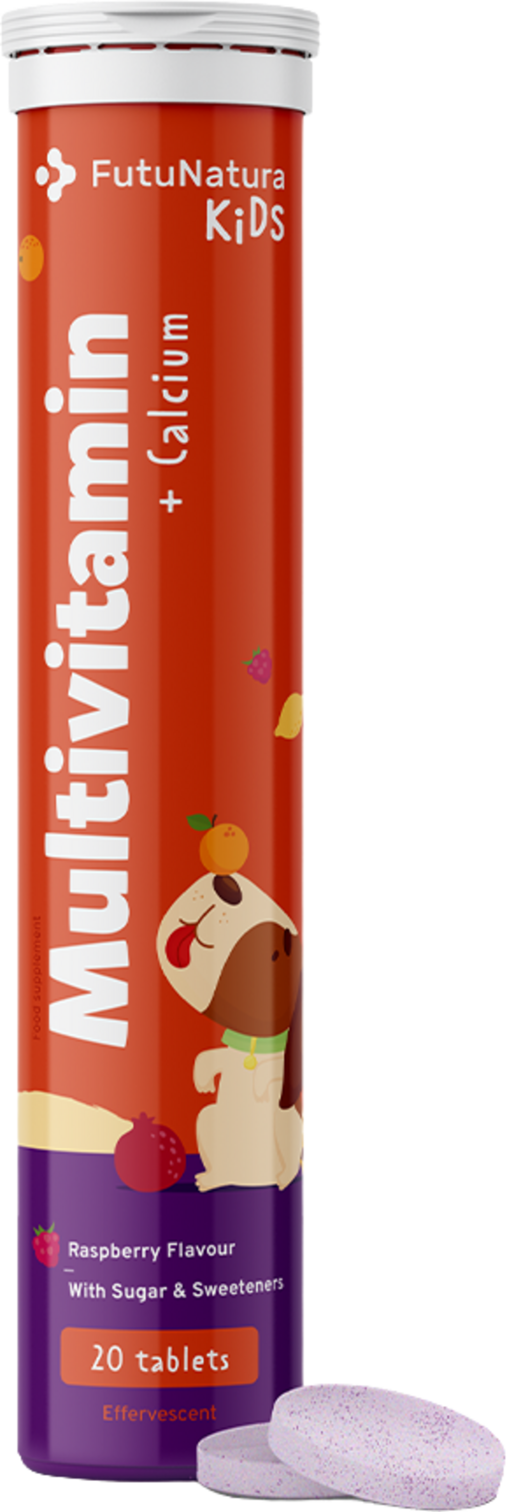 Multivitamins for Kids från FutuNatura Kids är praktiska brustabletter. De innehåller kalcium och nio vitaminer. Brustabletterna löses i vätska och tas i flytande form, vilket gör dem till ett bra alternativ till kapslar och tabletter.