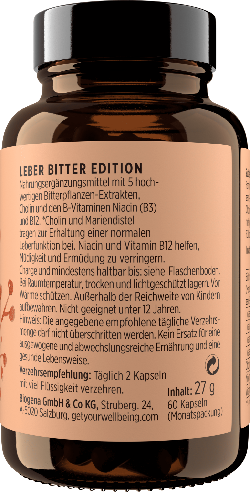 LEBER BITTER EDITION erbjuder en målinriktad kombination av fem högkvalitativa bitterväxtextrakt i en smart bitterblandning. Extrakten från mjölktistel, fänkål, ingefära, maskros och kronärtskocka innehåller kolin och B-vitaminerna niacin (B3) och B12. Denna noggrant balanserade formel ger dig ett perfekt stöd.