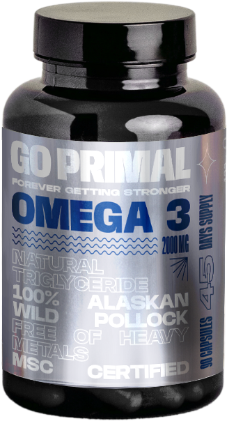 GoPrimal Omega 3 kapslar består av ren fiskolja, som erhålls under strikta förhållanden i det rena arktiska vattnet från fisk (Alaskan Pollock) som bearbetas omedelbart i naturen.