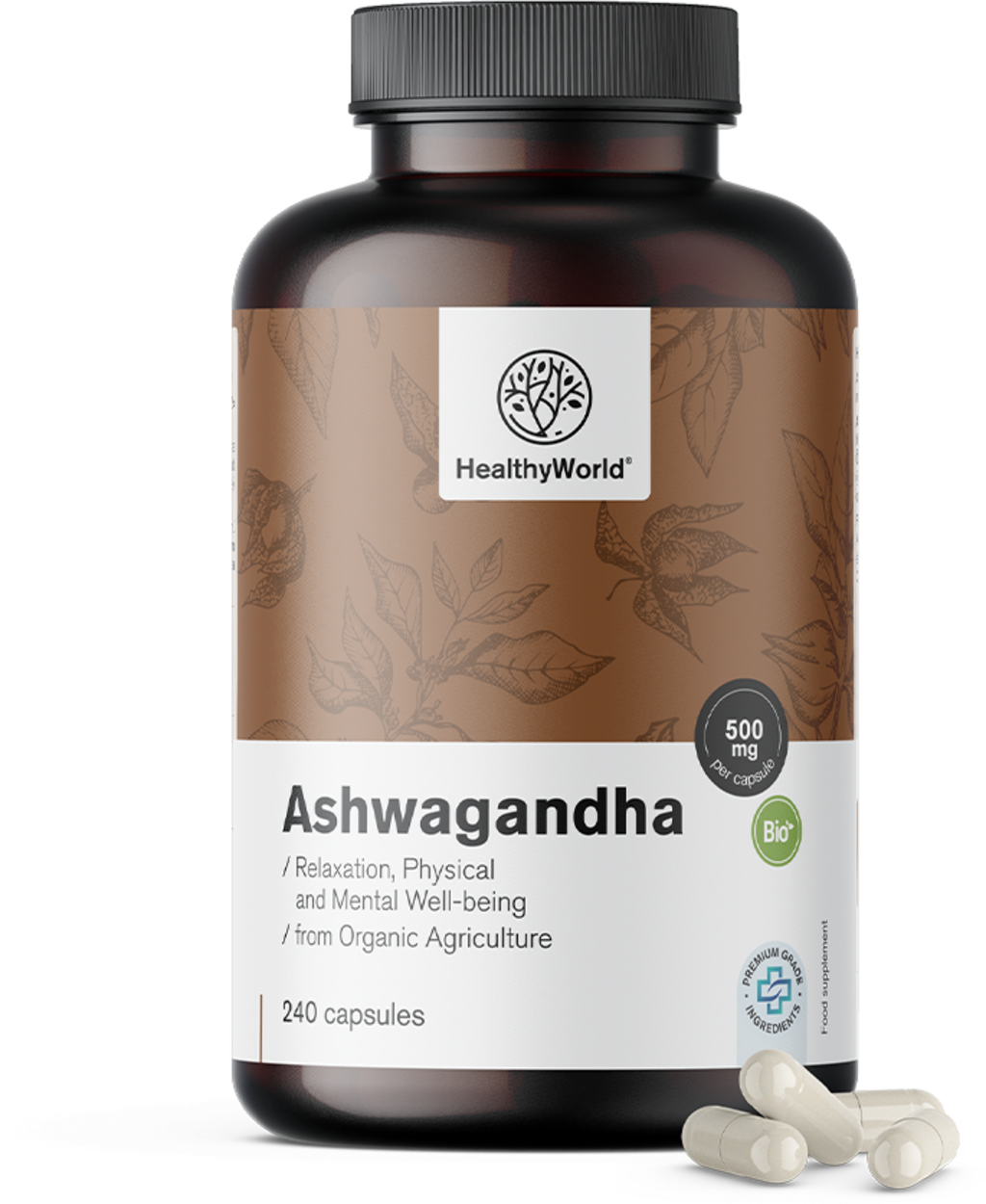 HealthyWorld Ashwagandha 500 mg Bio, 240 Kapslar