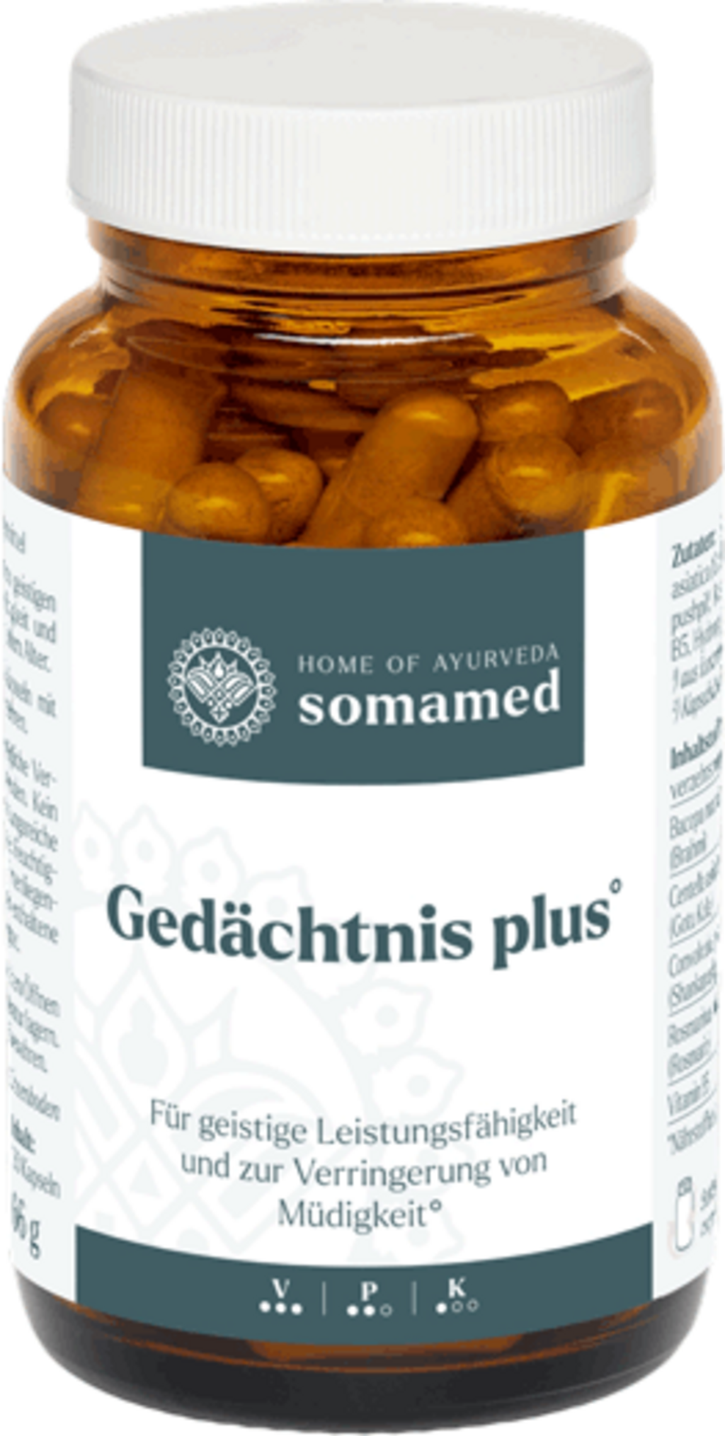Home of Ayurveda somamed har tagit fram en sammansättning som stödjer balansen mellan alla tre doshor - vata, pitta och kapha. Utvalda växter och örter som brahmi och rosmarin har kombinerats och optimerats med vitamin B5.