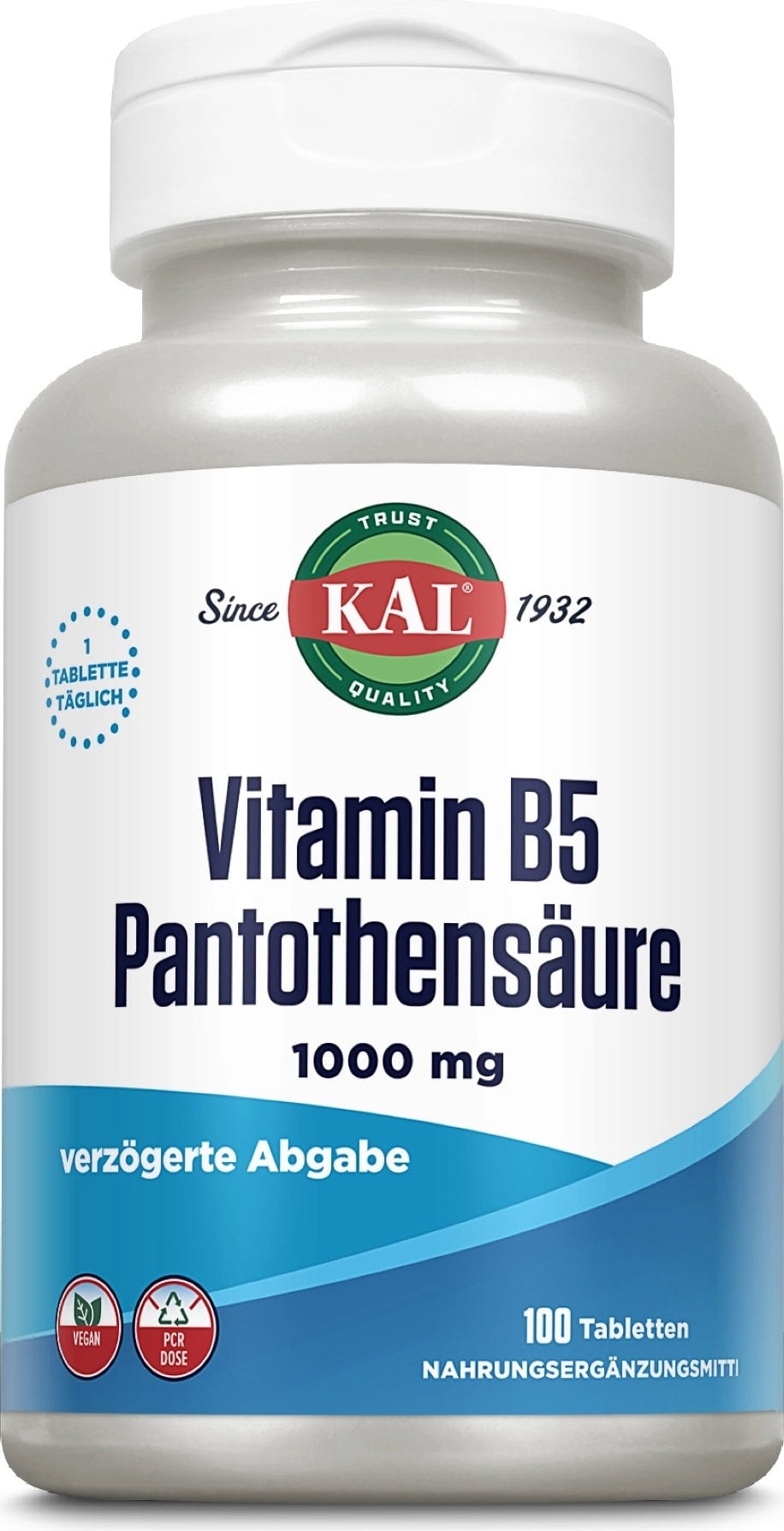 Vitamin B5 från KAL ger vitamin B5 och kalcium från kalcium-d-pantotenat med fördröjd frisättning.