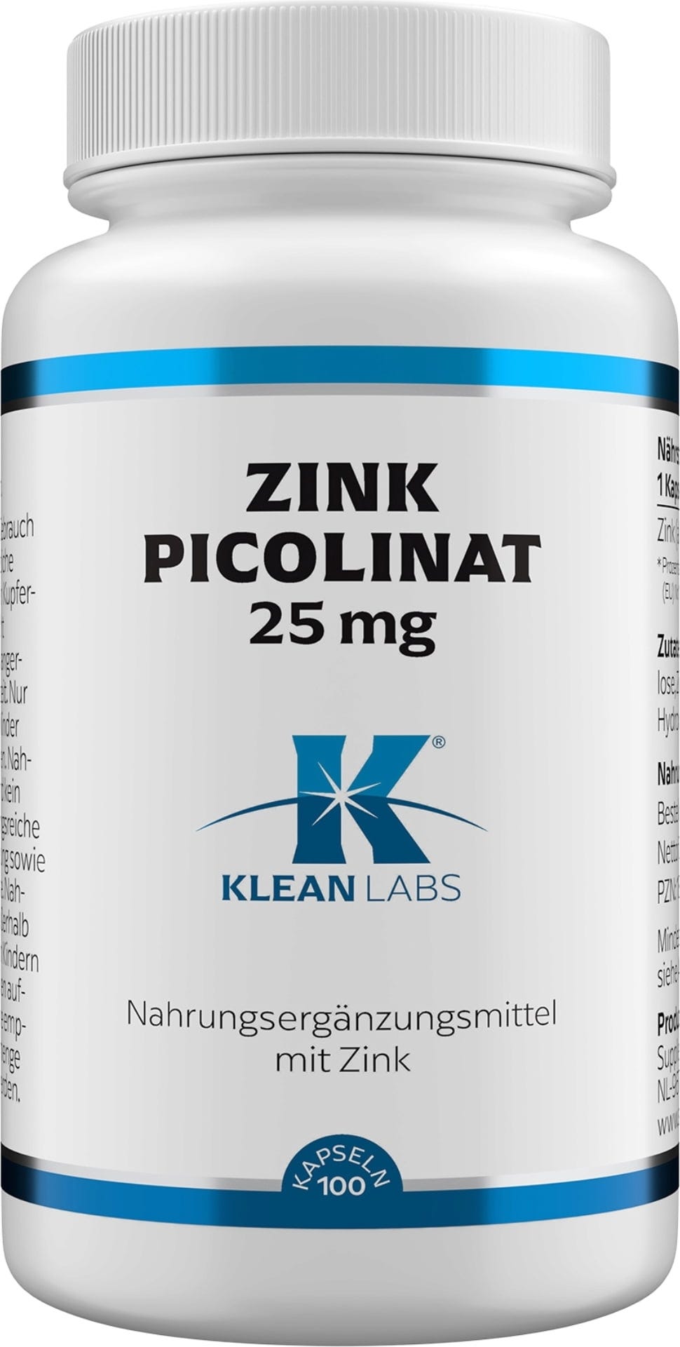 Spårämnet zink finns i Klean Labs kapslar som zinkpicolinate. Kapslarna är fria från artificiella smakämnen, färgämnen och konserveringsmedel och har ett vegetabiliskt kapselskal.