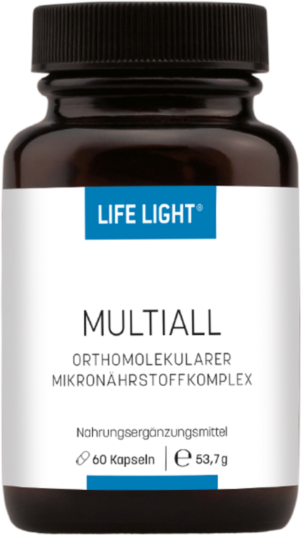 MultiAll från Life Light® är ett brett mikronäringskomplex som kombinerar vitaminer, mineraler, spårämnen, antioxidanter, enzymer och utvalda växtextrakt i en harmoniserad kombination. Formeln erbjuder ett mångsidigt komplement till den dagliga kosten och är särskilt lämplig för personer som värdesätter ett omfattande utbud av näringsämnen.