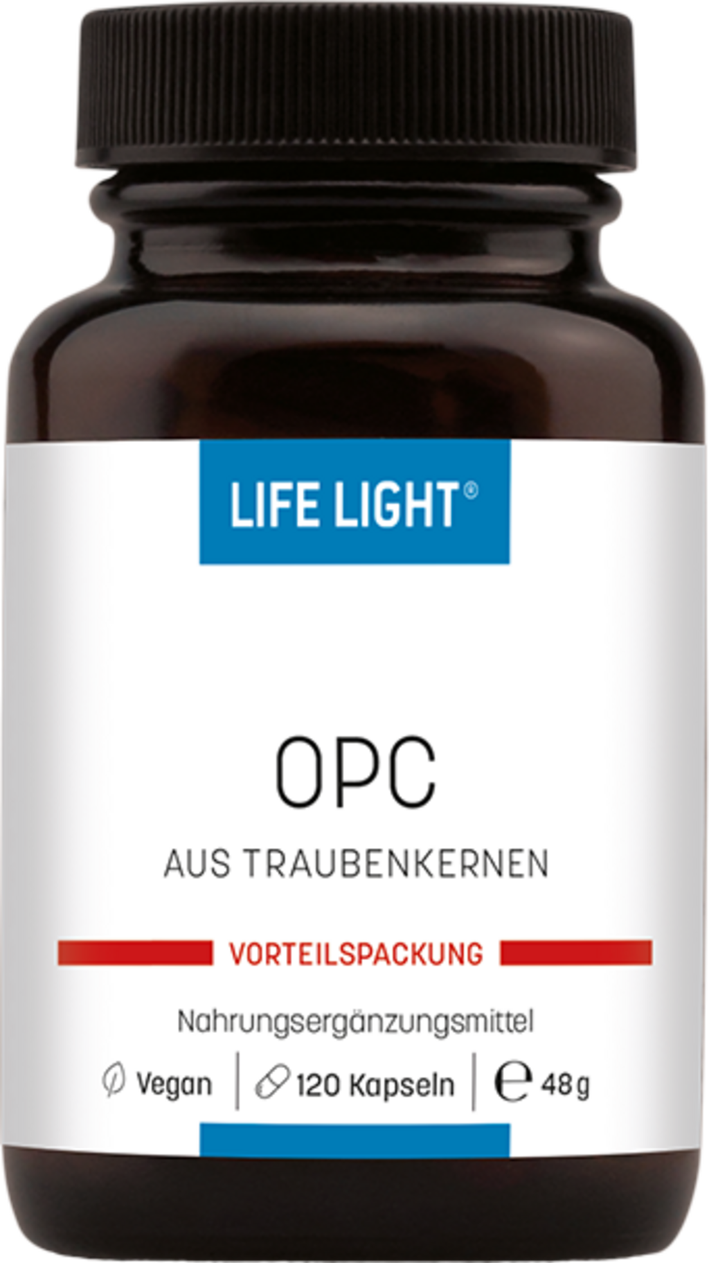 Life Light® OPC innehåller högkvalitativa oligomeriska proantocyanidiner (OPC) från druvkärneextrakt och polyfenoler från druvor. Den skonsamma extraktionsprocessen säkerställer att de värdefulla ingredienserna bevaras i stor utsträckning.