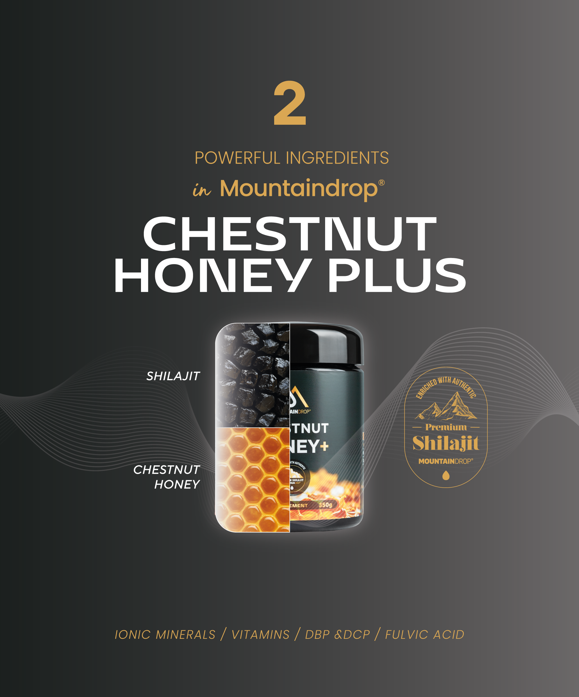 Chestnut Honey+ från Mountaindrop är en innovativ kombination som förenar den mineralrika kraften från altai-shilajit med egenskaperna hos naturlig kastanjehonung. Formuleringen bygger på samspelet mellan dessa komponenter för att bidra till ett intag av över 85 näringsämnen i en smakrik form. Tillverkad i Slovenien under strikta kvalitetskontroller erbjuder denna blandning ett näringsrikt tillskott för daglig användning. Varje batch testas oberoende för renhet och mikrobiologisk säkerhet.
