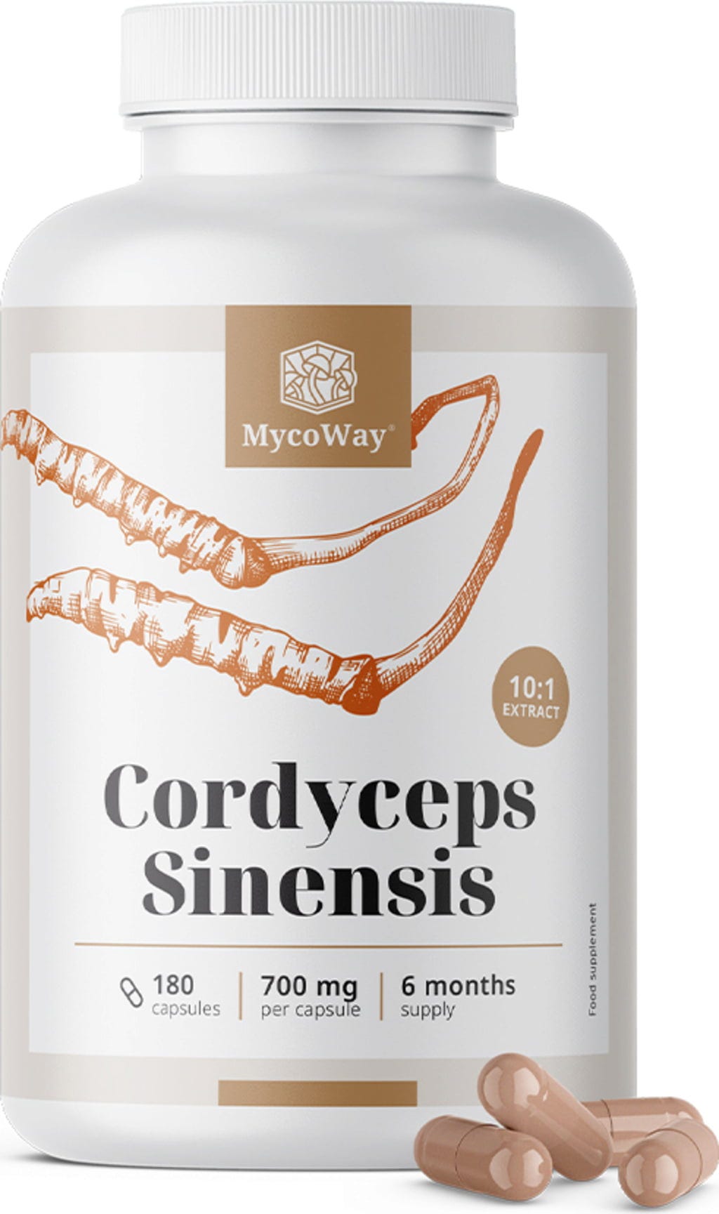 Kapslarna från MycoWay innehåller ett noggrant framställt cordyceps-extrakt som gör det enkelt att använda svampen i en praktisk form. Tack vare kapselformen slipper du tillredning och kan smidigt integrera produkten i din dagliga rutin. De praktiska kapslarna tas enkelt med tillräcklig mängd vätska och passar bra för en aktiv livsstil.