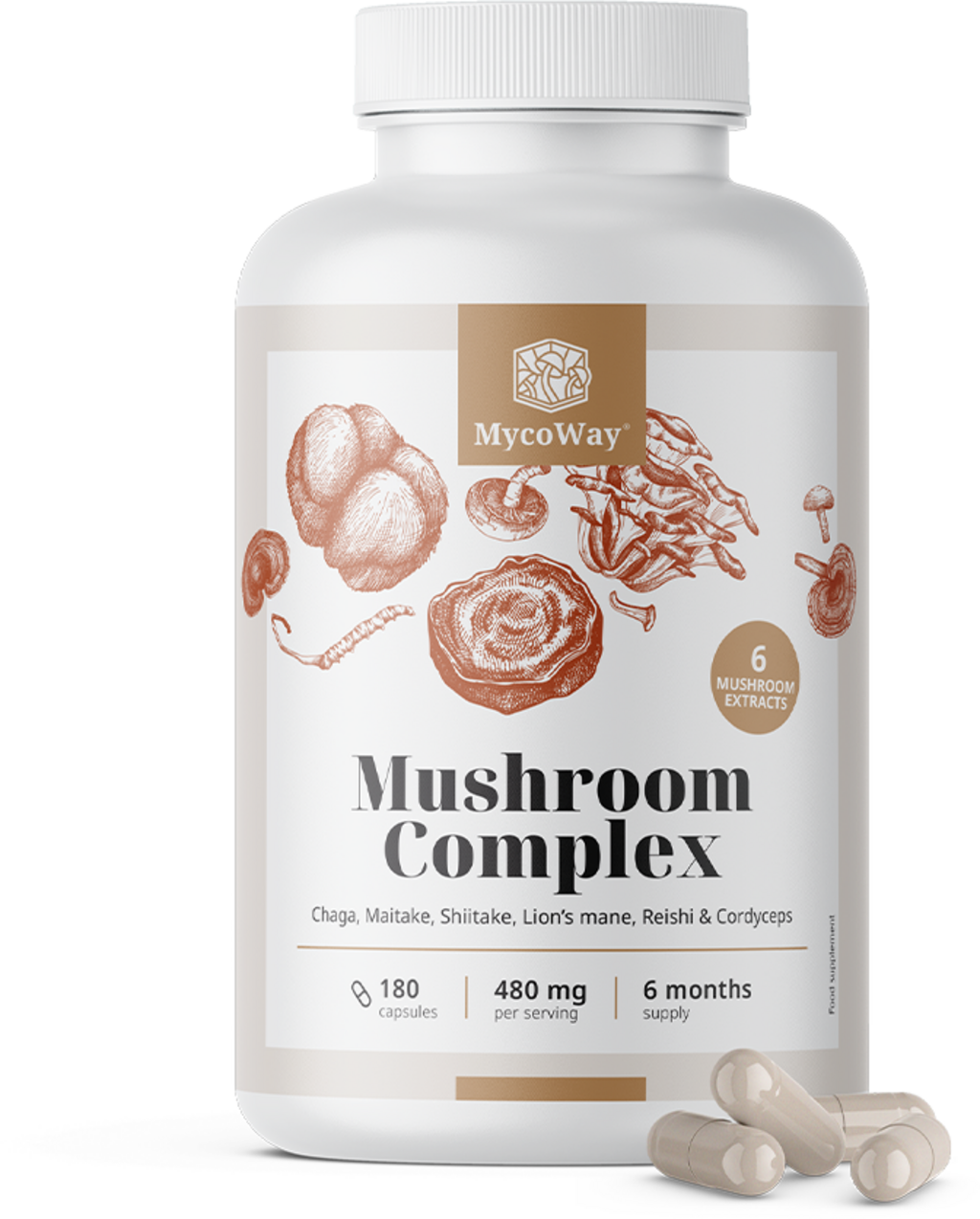 Den här komplexa formulan kombinerar sex av de mest välkända svamparna från asiatisk tradition i koncentrerad form: chaga, shiitake, reishi, maitake, cordyceps och igelkottstaggsvamp (Hericium erinaceus). Tillsammans ger de ett brett spektrum av växtbaserade ämnen som polysackarider - naturliga komponenter som har uppskattats i århundraden. Receptet är dessutom förstärkt med den essentiella aminosyran L-leucin för att ge ett mångsidigt tillskott till din dagliga kost.