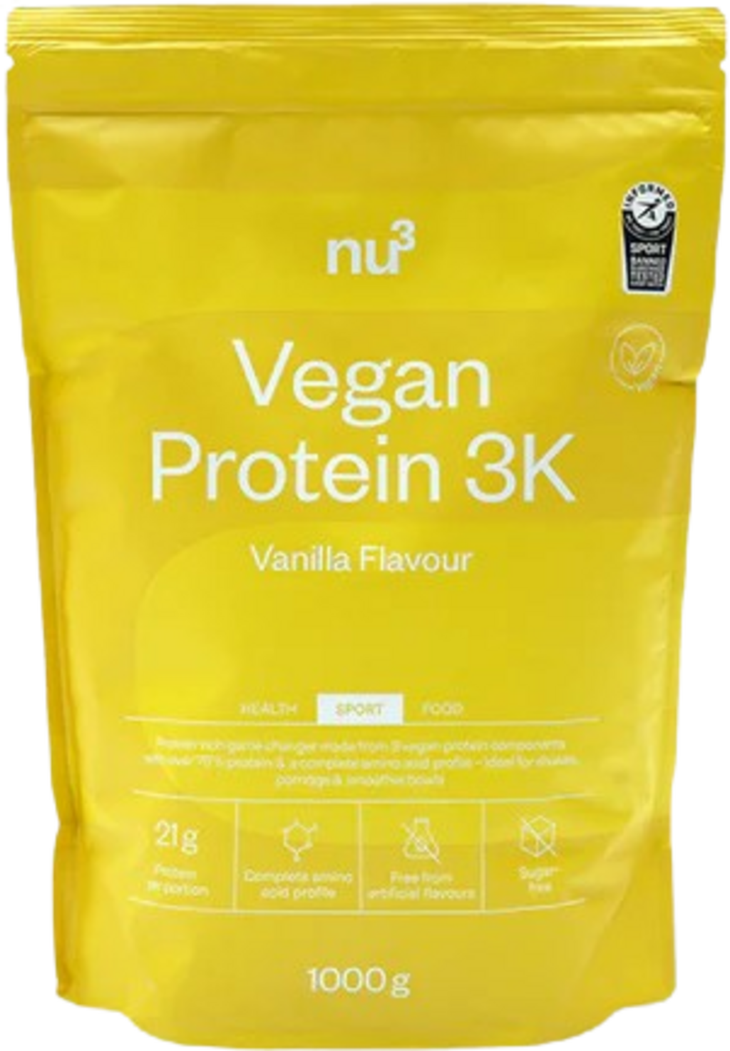 Upptäck nu3 Vegan Protein 3K – ditt växtbaserade proteinpulver. Kombinationen av ärt-, ris- och solrosprotein ger ett proteininnehåll på över 70 % – perfekt för att enkelt öka ditt dagliga intag.