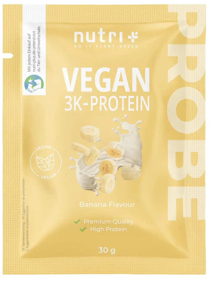 nutri + Vegan 3K Proteinpulver Probiergröße, Banana (30 g)