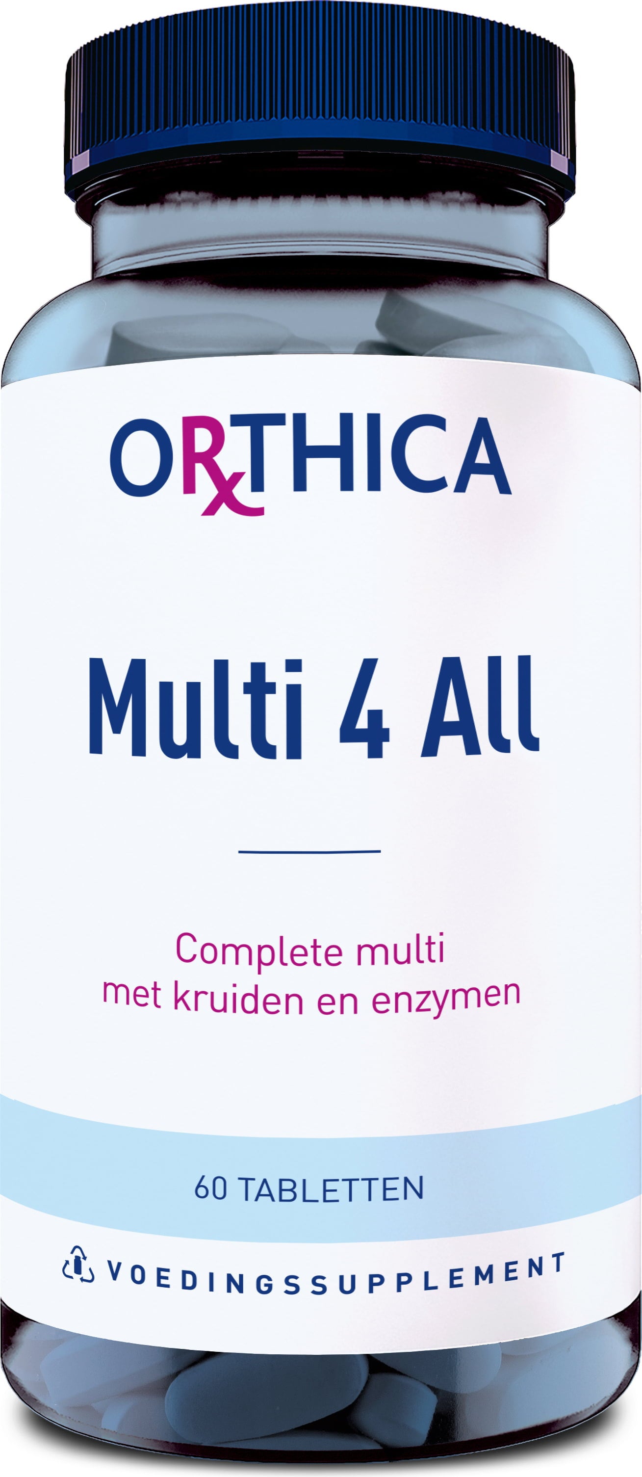 Orthica® Multi 4 All är ett komplex med många vitaminer, mineraler och växtkomponenter för välbefinnande.