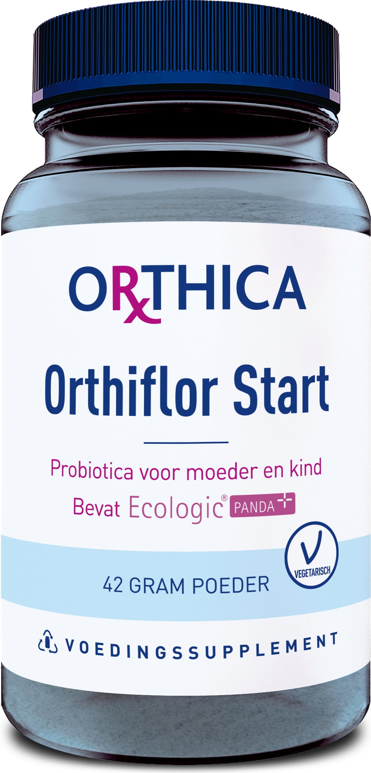 Orthica Flora Start innehåller Bifidobakterier. Denna probiotika med 3 miljarder bakterier (3 x 109) per dos kan användas av mamman under de sista sex veckorna av graviditeten och av barnet från födseln.