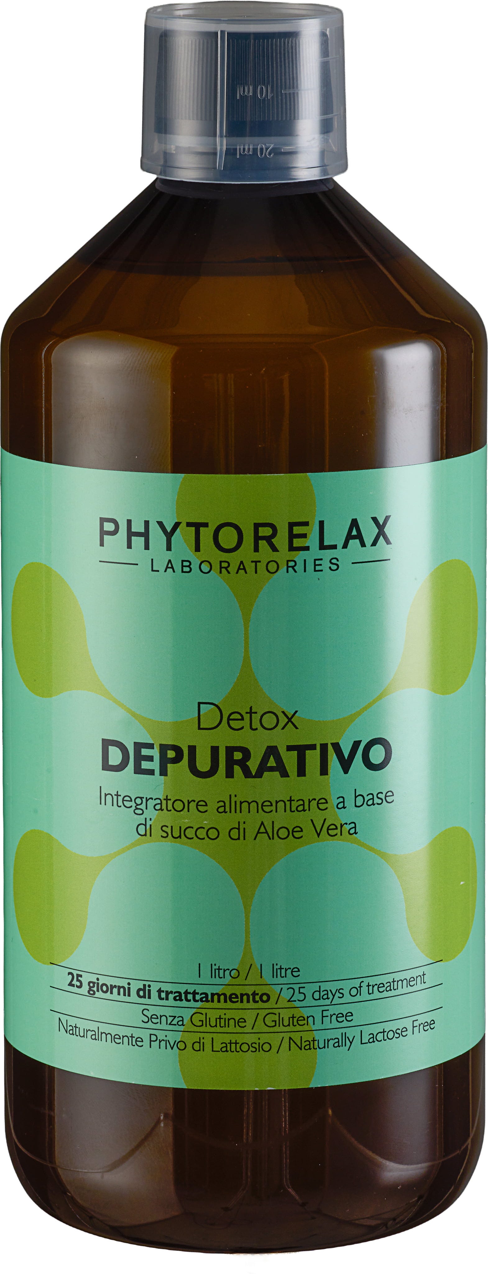 Phytorelax Depurativo är en aloe vera-baserad kosttillskottsjuice som passar perfekt i din dagliga rutin. Produkten innehåller saft från det inre av aloe-bladet med naturlig fruktkött och levereras i en praktisk flaska med måttbägare – enkel att dosera och flexibel att blanda i valfri dryck. Formulan är fri från gluten och laktos, medvetet avskalad för dig som föredrar ett tydligt och okomplicerat tillskott. Perfekt för dig som vill hålla din supplementrutin enkel och strukturerad.