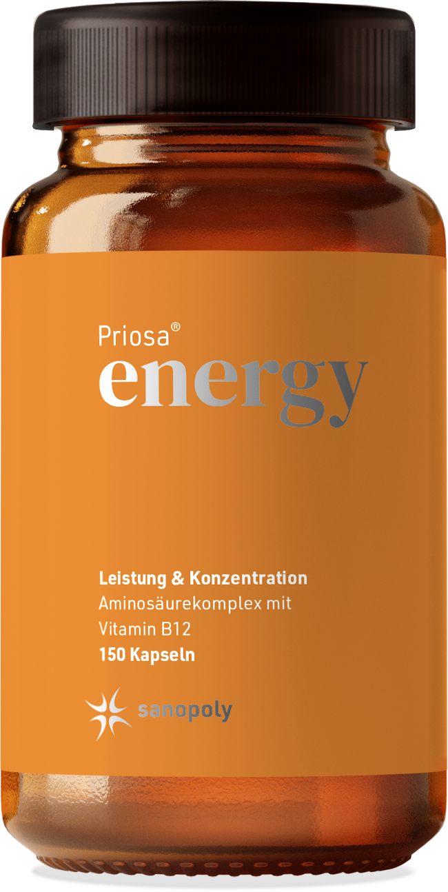 Priosa®ENERGY är ett balanserat aminosyrakomplex med B-vitaminer. PriosaMINO 2.0 blir Priosa®ENERGY! Den innehåller också metionin och enzymet superoxiddismutas som är bundet i melonfruktjuice. Tillverkad utan användning av artificiella aromer, färgämnen och konserveringsmedel.
