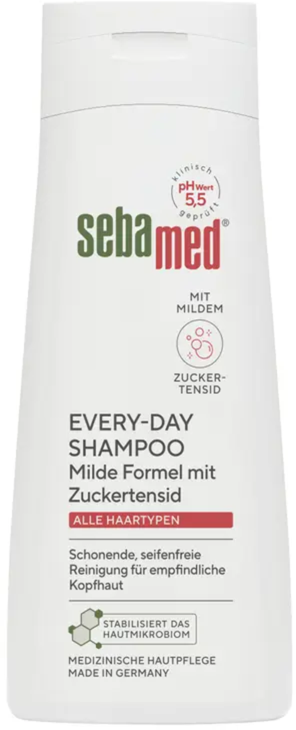 Perfekt för dagligt bruk - The Every-Day Shampoo från sebamed rengör varsamt hår och hårbotten tack vare en mild formula med sockertensider. Den speciellt utvecklade kombinationen av tensider skyddar både hår och hårbotten från att torka ut. PH-värdet på 5,5 skyddar hudens naturliga skyddsbarriär. Schampot är fritt från mikroplaster garanterar fräscht och rent hår med extra volym och glans.