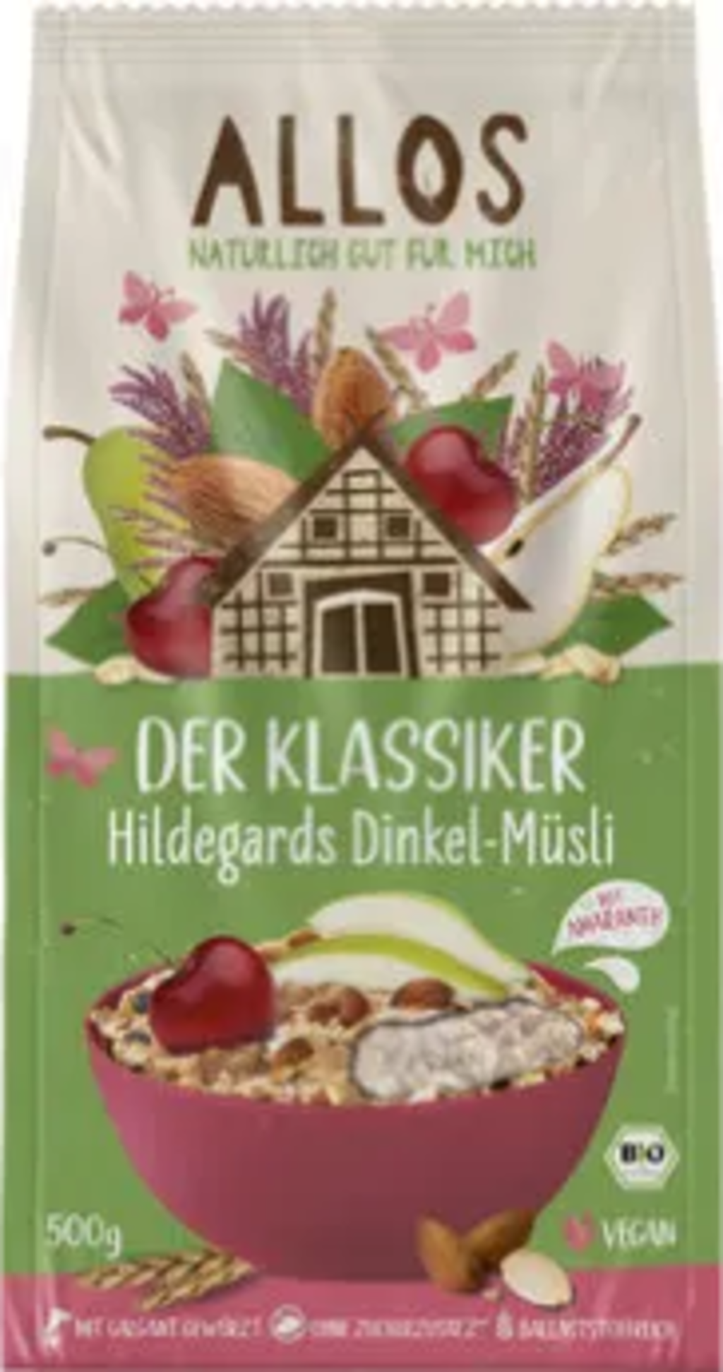 En riktig klassiker, denna Hildegards speltmüsli från ALLOS. Receptet är inspirerat av Hildegard von Bingen och består av speltflingor, amaranth, psylliumskal, vindruvor, päron och körsbär, avrundat med kryddor som bertram, galant och kanel. En müslikreation som du bara måste prova! Tillverkad utan tillsatt socker.