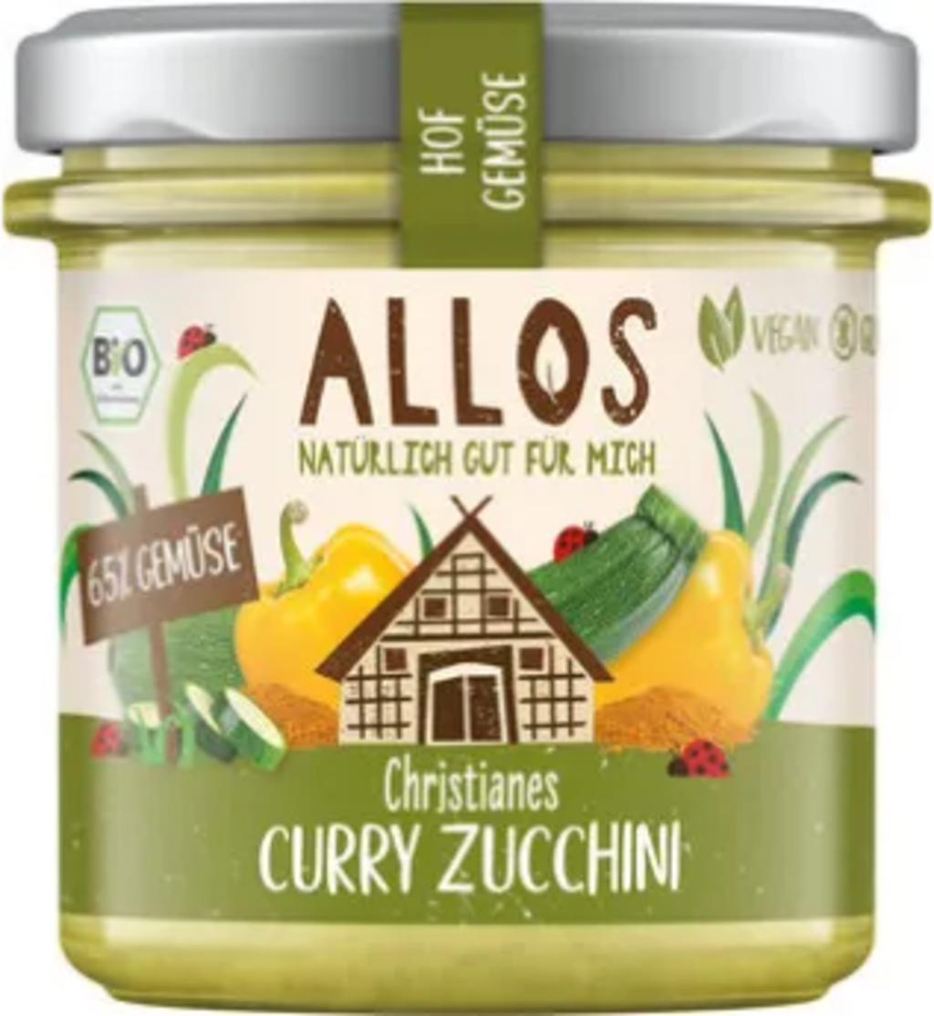 Courgetten ser inte bara bra ut i en currypanna - den rika gula kryddan harmoniserar också med de gröna trädgårdsgrönsakerna som en spridning. Grönsaker från Ekologiska Gården Christianes Curry Courgette kombinerar zucchini, gul paprika och kryddig curry i en utsökt blandning. Med 65% grönsaker, en riktig smakgaranti.Vegansk och glutenfri