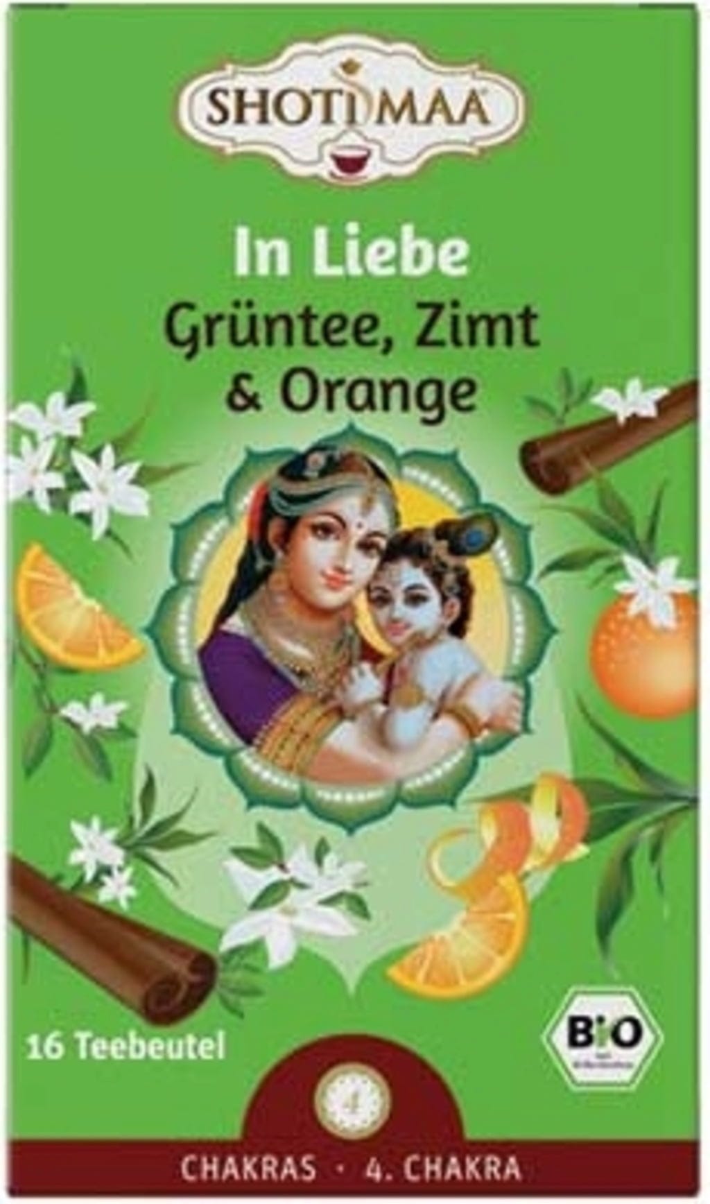 Shoti Maa Te In Liebe - "I Kärlek" - Grönt te, Kanel & Apelsin, Eko, 16 tepåsar (32 g)
