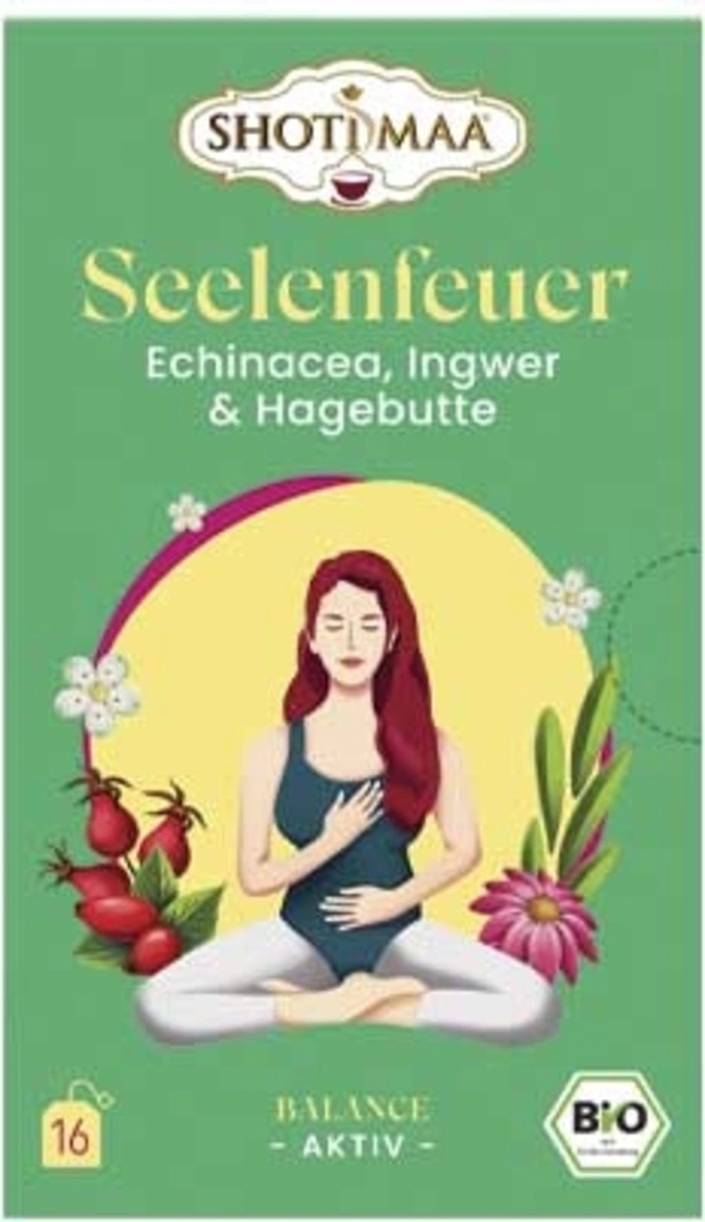 Shoti Maa Te Seelenfeuer - "Själens Eld" - Echinacea, Ingefära & Nypon, Eko, 16 tepåsar (32 g)