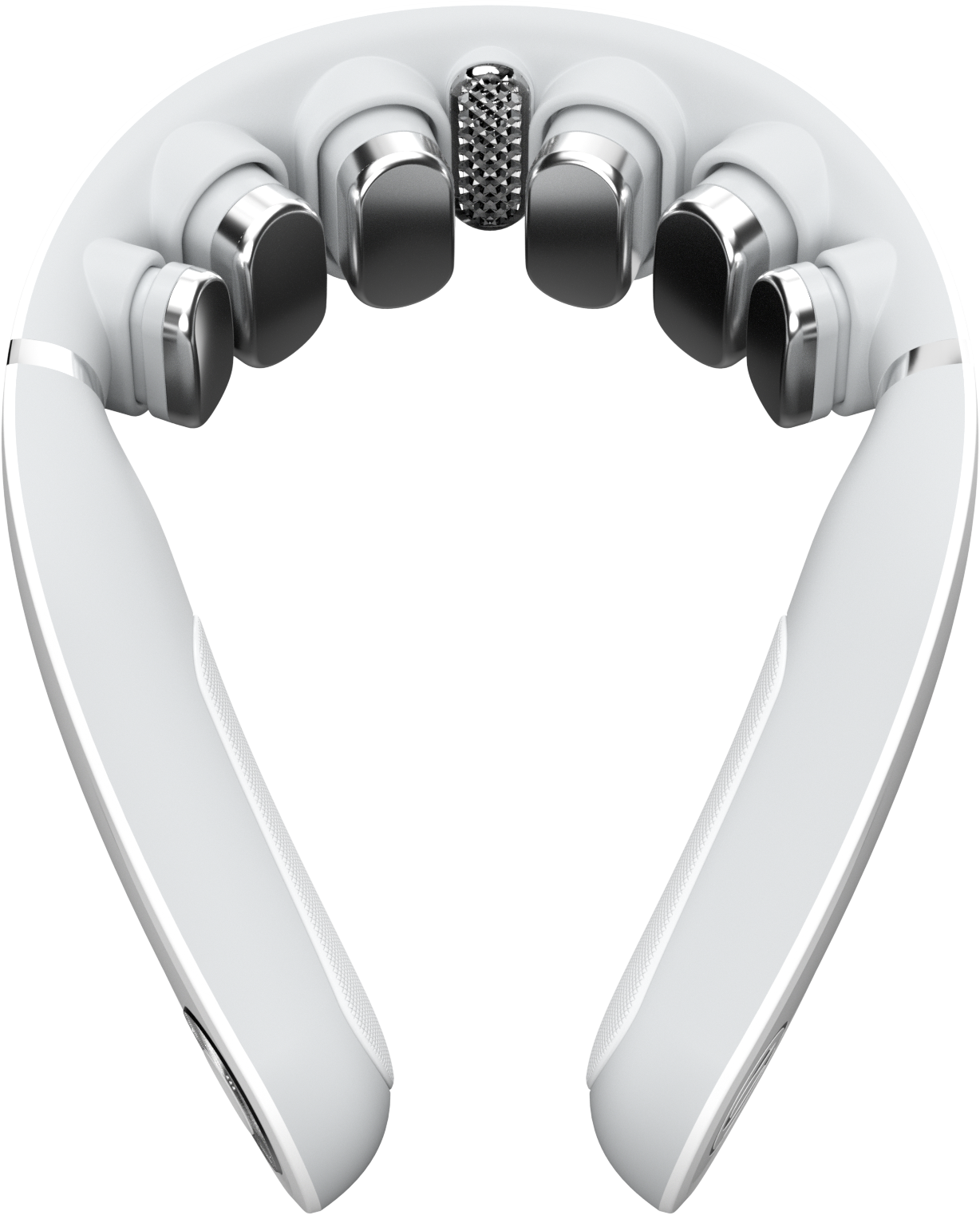 Den ergonomiska designen gör att kontaktpunkterna ligger stadigt mot nacken, och tack vare den lätta konstruktionen är enheten bekväm även vid längre användning. Den trådlösa funktionen och de mångsidiga inställningarna gör det enkelt att integrera produkten i vardagen - både efter träning och under arbetsdagen.