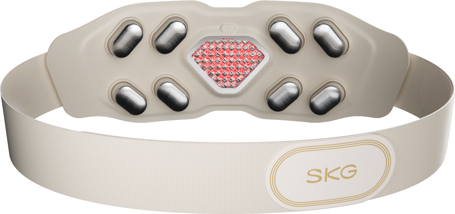 Enheten har åtta värmeaktiva massageknutar som förstärks av 31 integrerade LED-lampor för rödljusbehandling. Denna kombination levererar konstant värme i tre steg (38 °C till 42 °C), som tränger djupt in i vävnaden och främjar blodcirkulationen. Det andningsaktiva nylonmaterialet och det hudvänliga silikonet ger hög komfort och är lätt att rengöra.
