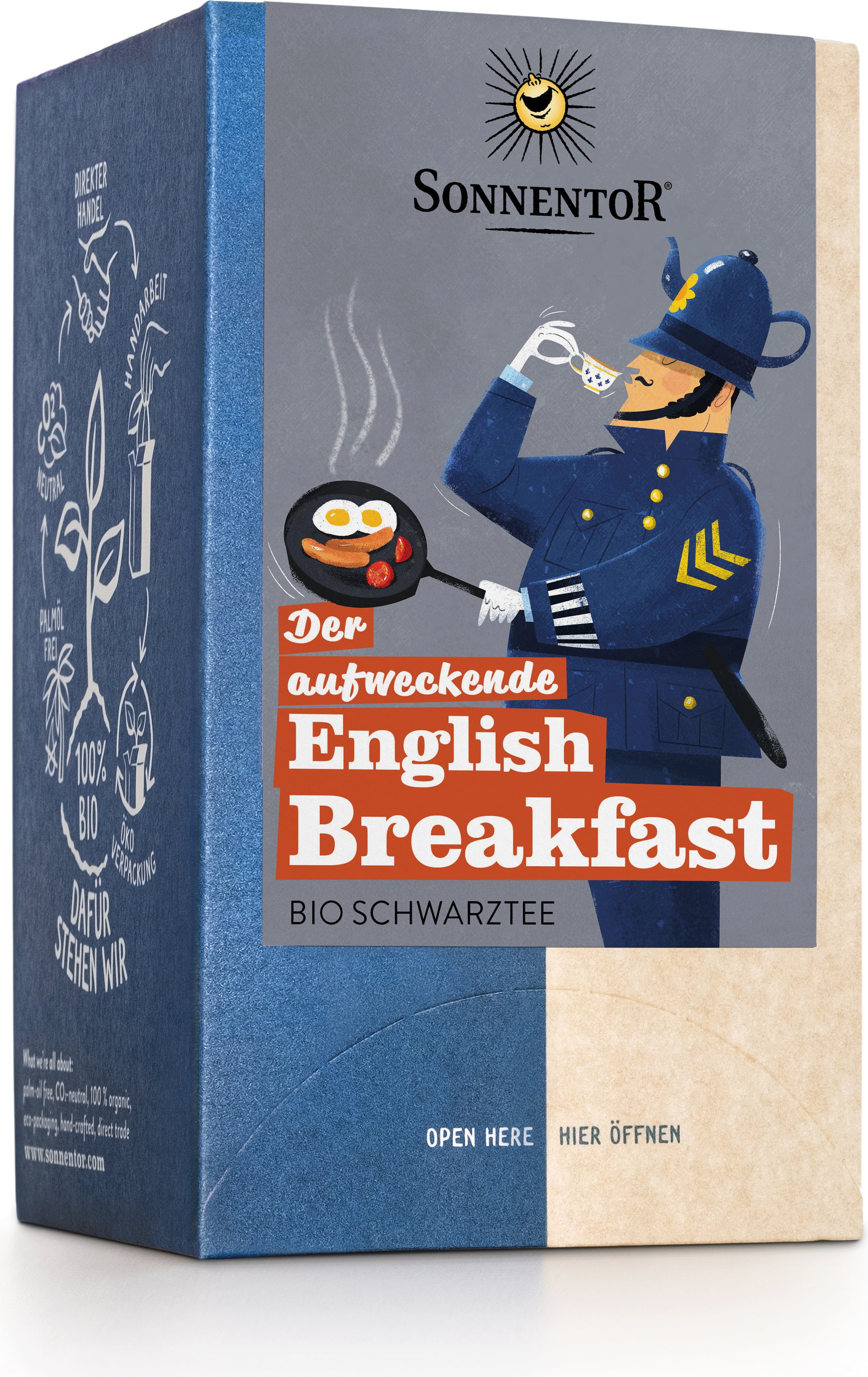 Din väckarklocka i en kopp: Sonnentors English Breakfast är ett kraftfullt ekologiskt Ceylon-svart te med koffein - perfekt till morgonen! Teet kommer från Sri Lanka, tidigare känt som Ceylon under brittiskt kolonialstyre, och är en klassiker inom brittisk tekultur. En kopp till?
