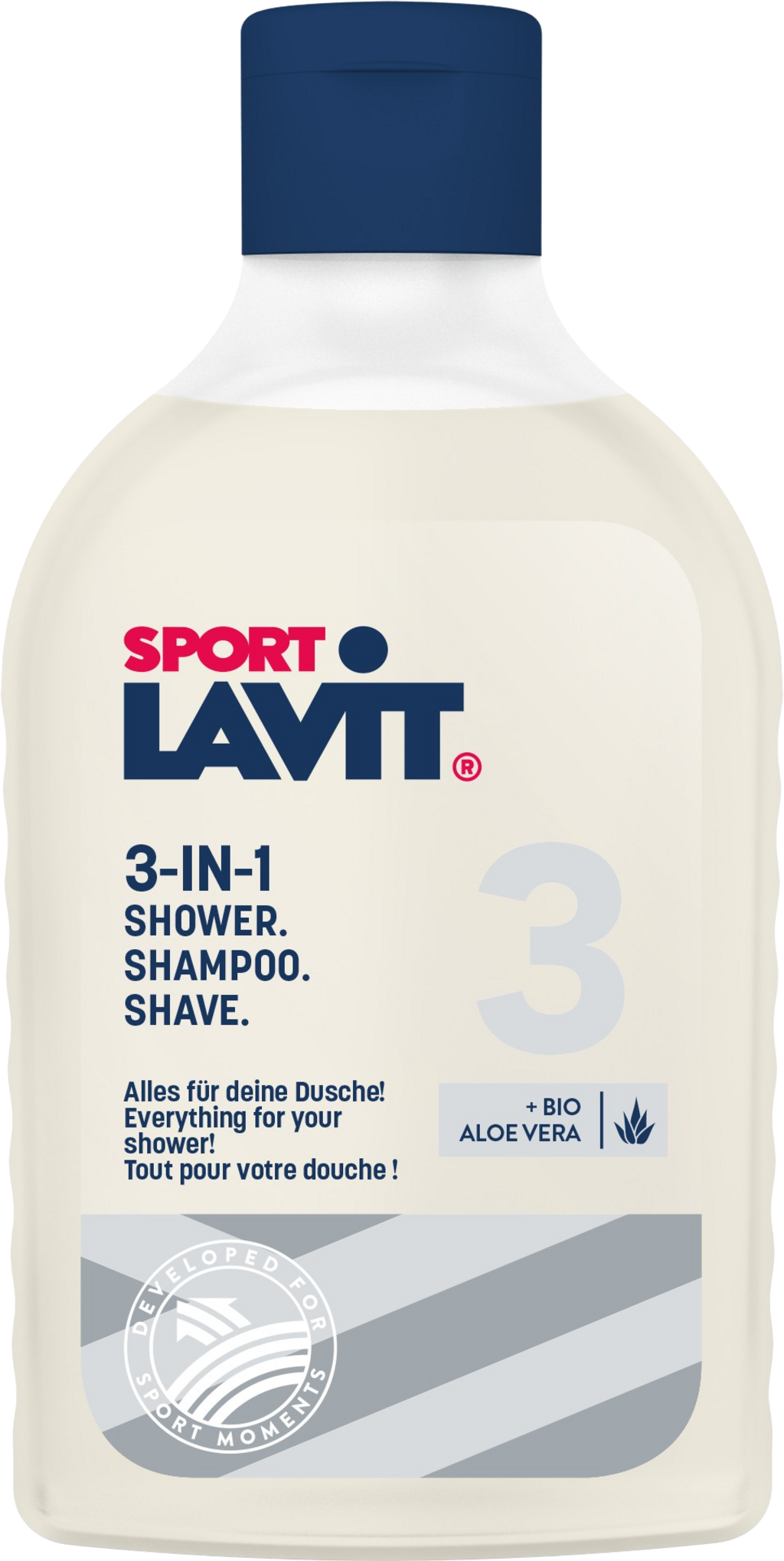 SPORT LAVIT® 3-IN-1 kombinerar duschgel, schampo och rakgel i en och samma produkt. Perfekt för alla som uppskattar snabb och effektiv vård efter sport eller i vardagen. Med ekologisk aloe vera ger formulan en behaglig hudkänsla och skonsam rengöring från topp till tå.
