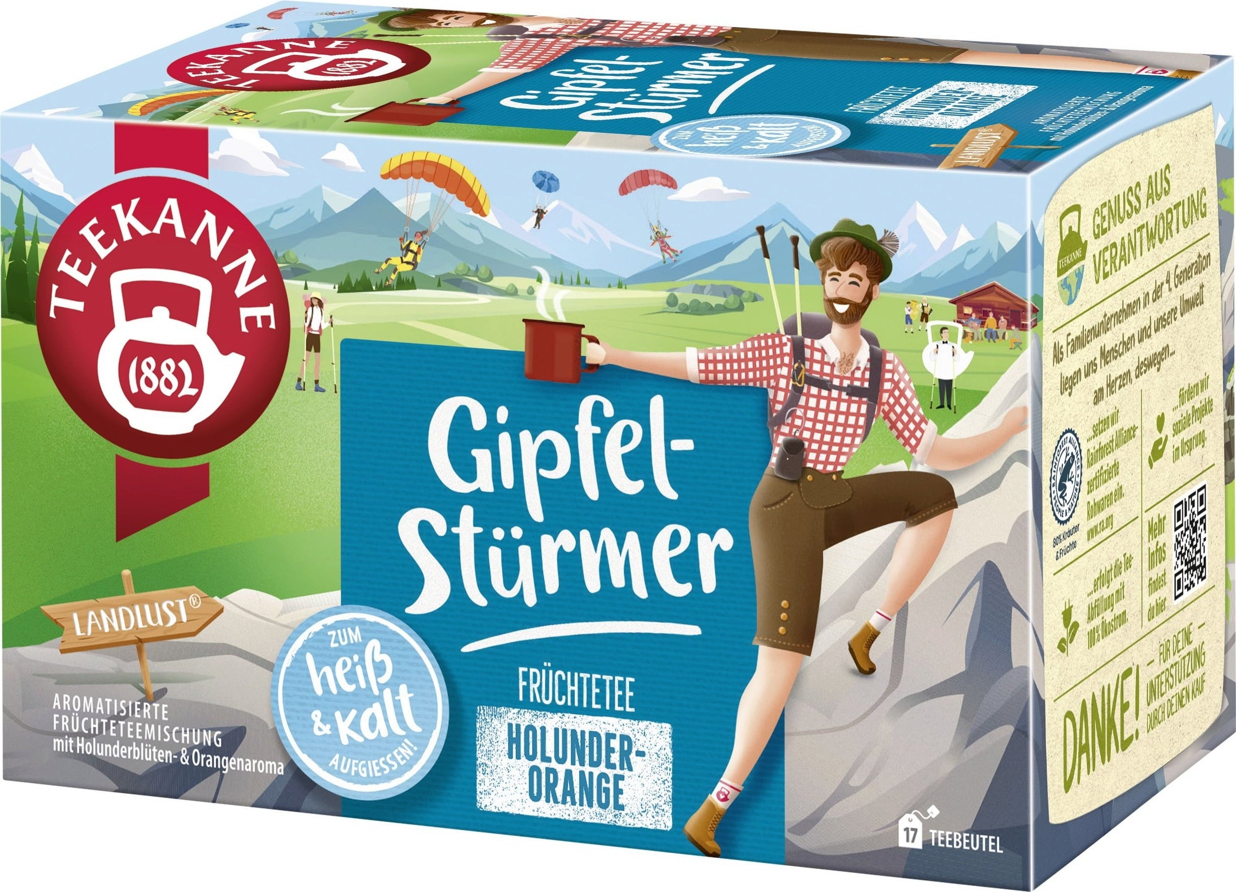Med TEEKANNE Landlust Gipfelstürmer smakar varje kopp av äventyr och frihet. Efter en vandring, skidtur eller bara däremellan: Detta te kombinerar den harmoniska smaken av fläderblommor med den syrliga friskheten från apelsiner. Njut av din kopp som en varm eller kall dryck. Ett te som kommer att följa dig året runt och ge dig den där toppkänslan.