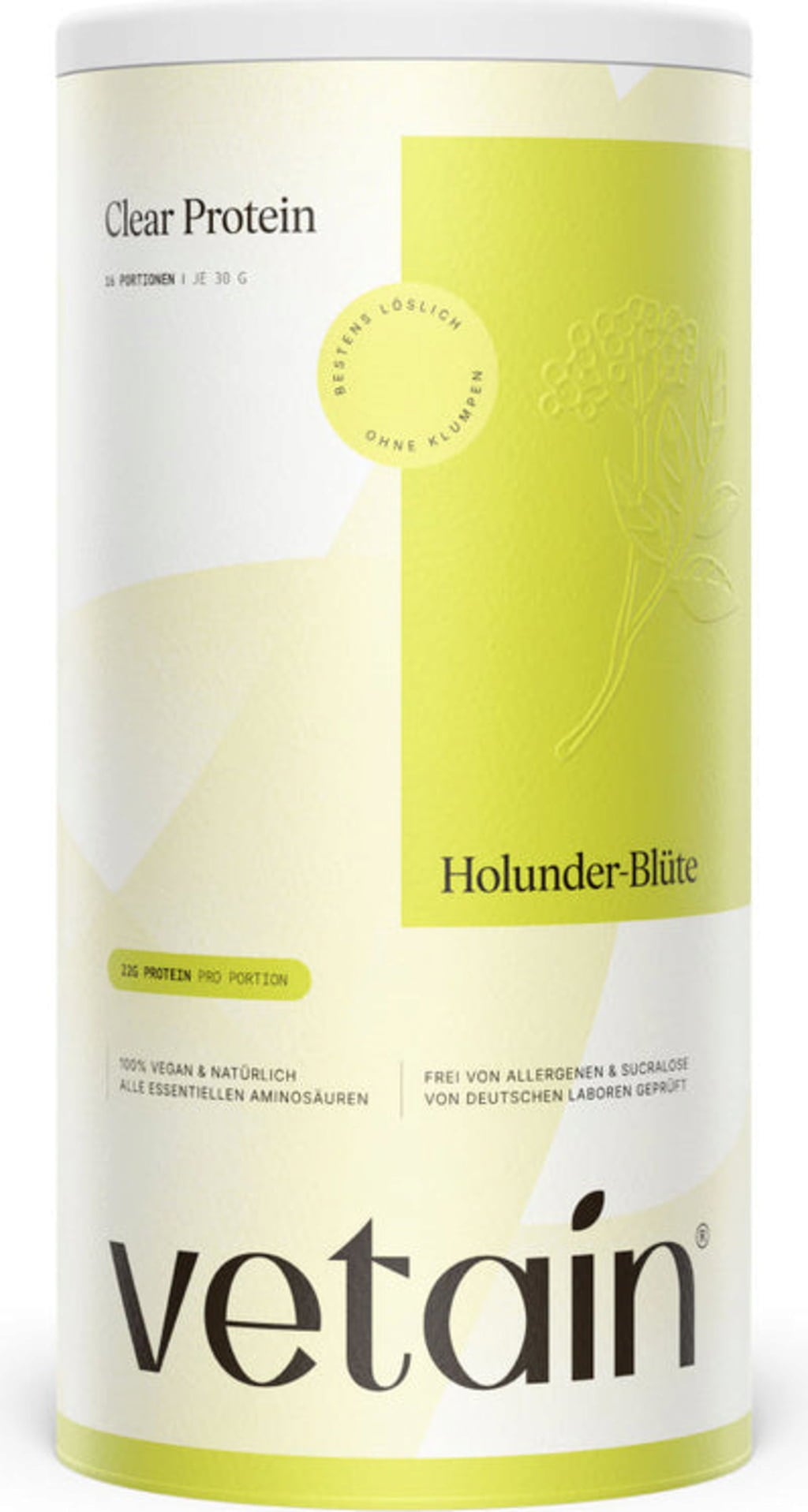 Vetain Clear Protein är en uppfriskande och ren proteinkälla som löser sig helt i vatten. Pulvret är veganskt och fritt från tillsatt socker, laktos, fett och soja. Med över 22 g växtbaserat protein per portion ger det ett koncentrerat tillskott, som tack vare fermenterat proteinhydrolysat tas upp extra effektivt av kroppen. Den lätta och fräscha konsistensen gör det perfekt för dig som föredrar ett lättlösligt alternativ till krämiga shakes.