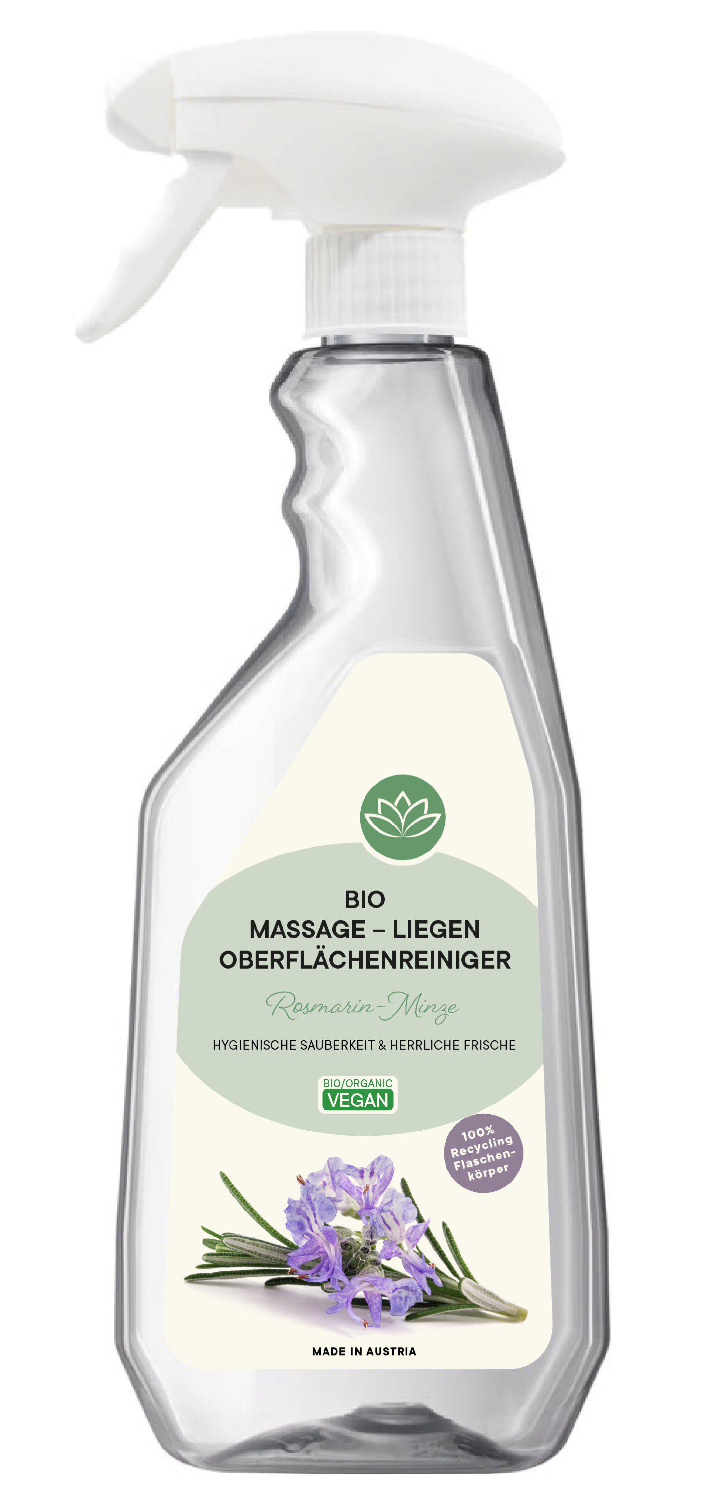 Detta naturliga specialrengöringsmedel är lämpligt för rengöring av massagebord och vattentäta ytor. Formeln är baserad på organiska råvaror och garanterar hygienisk renhet och en underbar örtfrisk doft på nolltid.