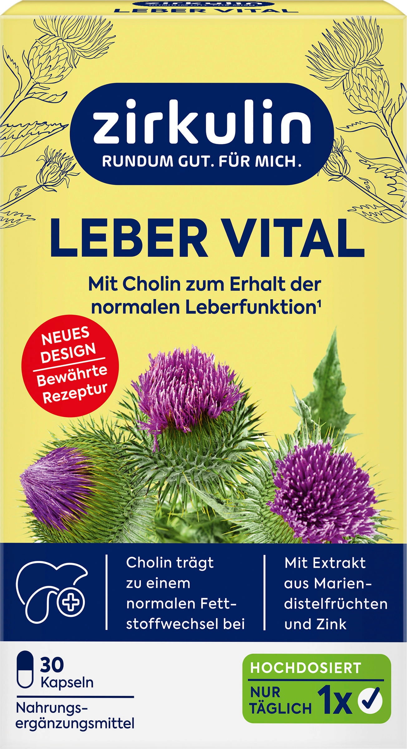 Levern är ett viktigt organ för att bryta ner främmande ämnen i kroppen och har en central roll i ämnesomsättningen. Leber Vital-kapslarna från zirkulin innehåller kolin, mariatistelfruktextrakt och zink. De är veganska samt fria från gluten och tillsatt socker.